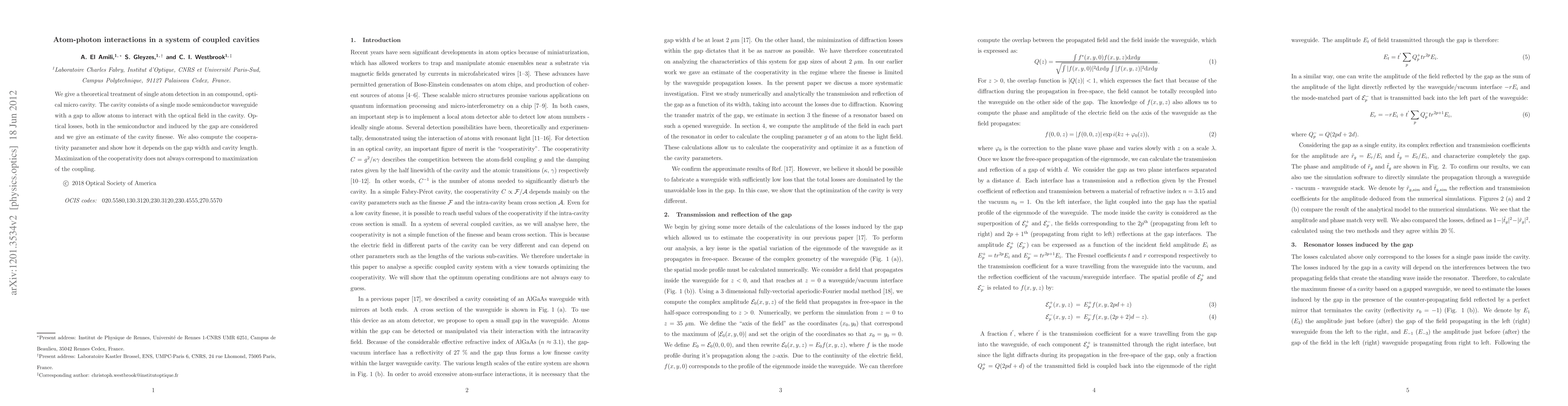 We give a theoretical treatment of single atom detection in an compound, optical micro cavity. The cavity consists of a single mode semiconductor waveguide with a gap to allow atoms to interact with the optical field in the cavity. Optical losses, both in the semiconductor and induced by the gap are considered and we give an estimate of the cavity finesse. We also compute the cooperativity parameter and show how it depends on the gap width and cavity length. Maximization of the cooperativity does not always correspond to maximization of the coupling.