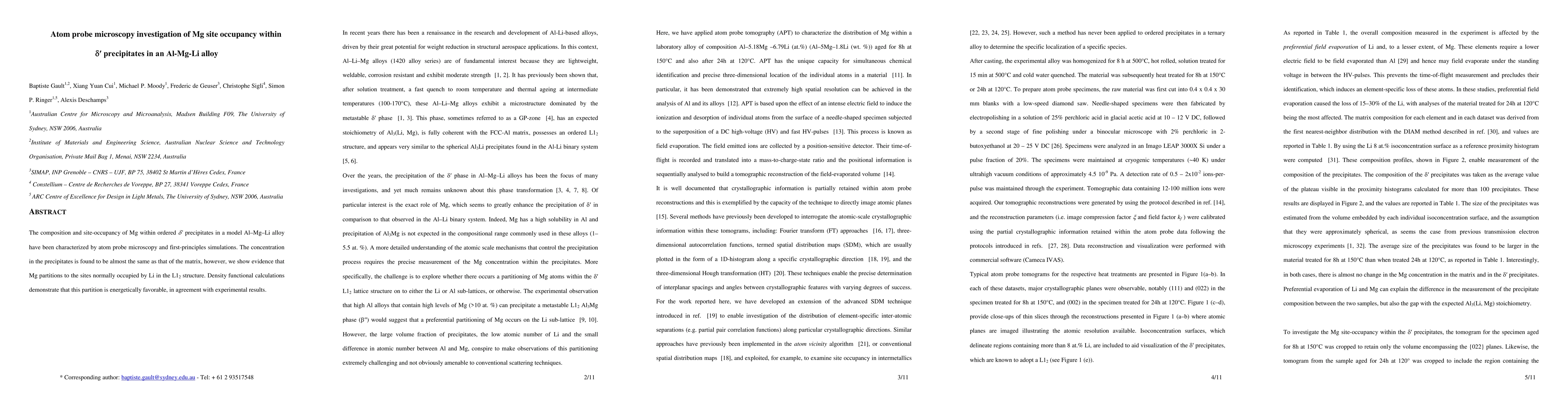 Summary: Atom probe microscopy reveals that Mg in {\delta} precipitates within an Al Mg Li alloy occupies sites typically held by Li in the L12 structure, a finding supported by first-principles simulations showing this partitioning is energetically favorable.