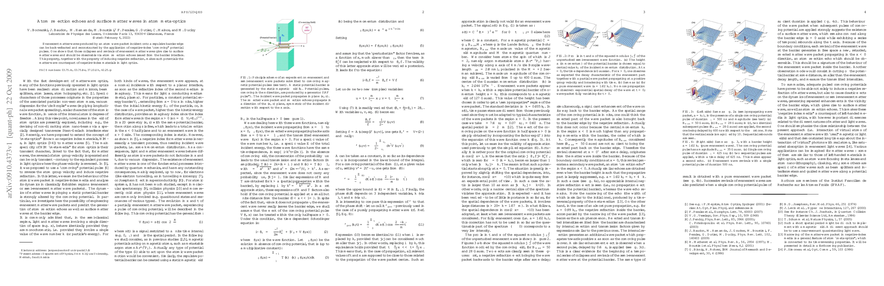 The paper introduces a method for reversing atom group velocity and inducing negative refraction using transient negative-index potentials, enabling the manipulation of evanescent matter-wave packets and the generation of atom reflection echoes and surface matter waves.