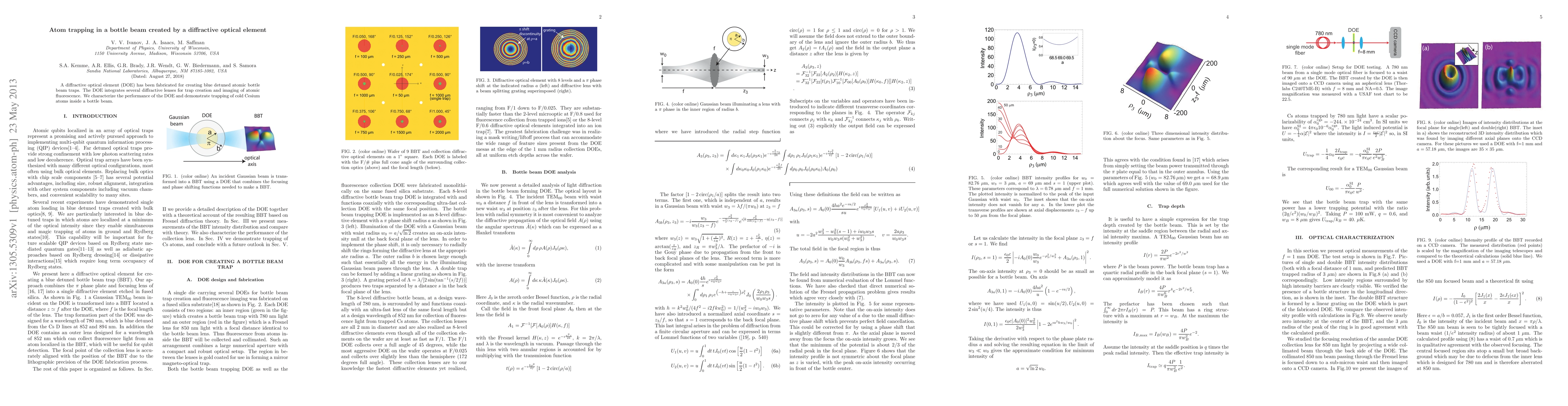 A diffractive optical element (DOE) was fabricated to create blue detuned atomic bottle beam traps, successfully trapping cold Cesium atoms within the beam and enabling atomic fluorescence imaging.