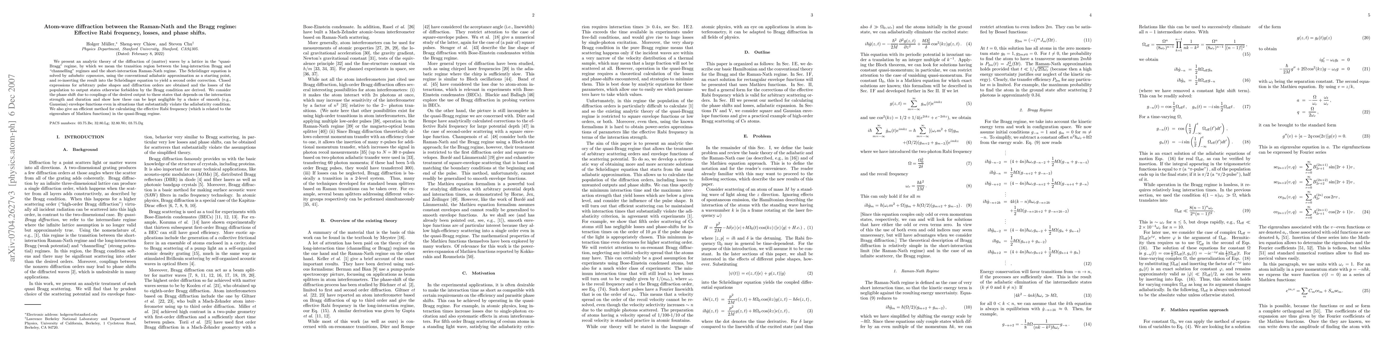 This paper develops an analytic theory for atom-wave diffraction in the quasi-Bragg regime, deriving closed expressions for diffraction orders and effective Rabi frequency, and discusses methods to minimize losses and phase shifts through smooth pulse shapes.