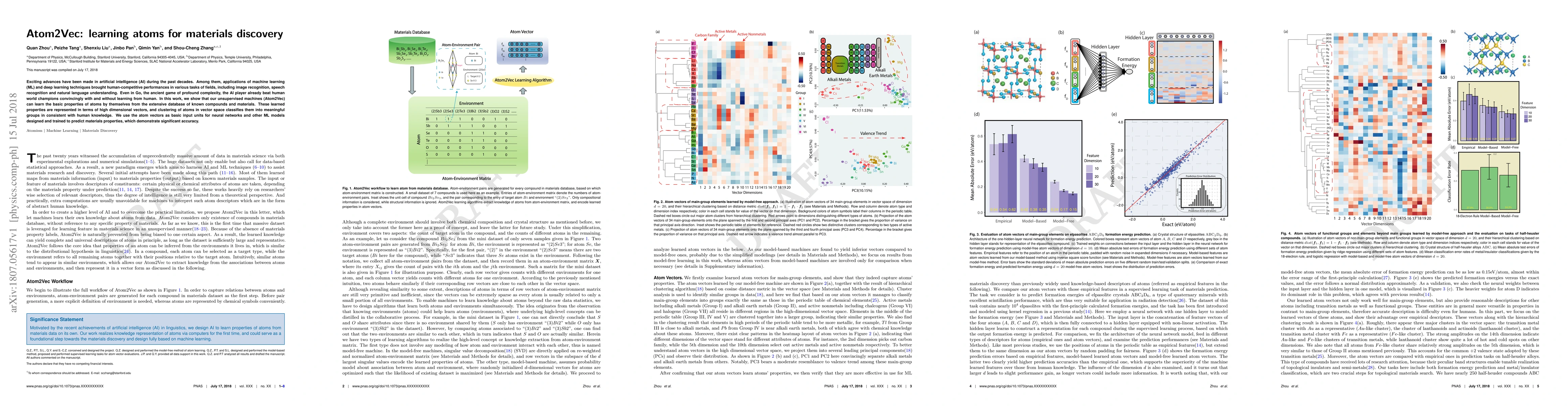 Exciting advances have been made in artificial intelligence (AI) during the past decades. Among them, applications of machine learning (ML) and deep learning techniques brought human-competitive performances in various tasks of fields, including image recognition, speech recognition and natural language understanding. Even in Go, the ancient game of profound complexity, the AI player already beat human world champions convincingly with and without learning from human. In this work, we show that our unsupervised machines (Atom2Vec) can learn the basic properties of atoms by themselves from the extensive database of known compounds and materials. These learned properties are represented in terms of high dimensional vectors, and clustering of atoms in vector space classifies them into meaningful groups in consistent with human knowledge. We use the atom vectors as basic input units for neural networks and other ML models designed and trained to predict materials properties, which demonstrate significant accuracy.