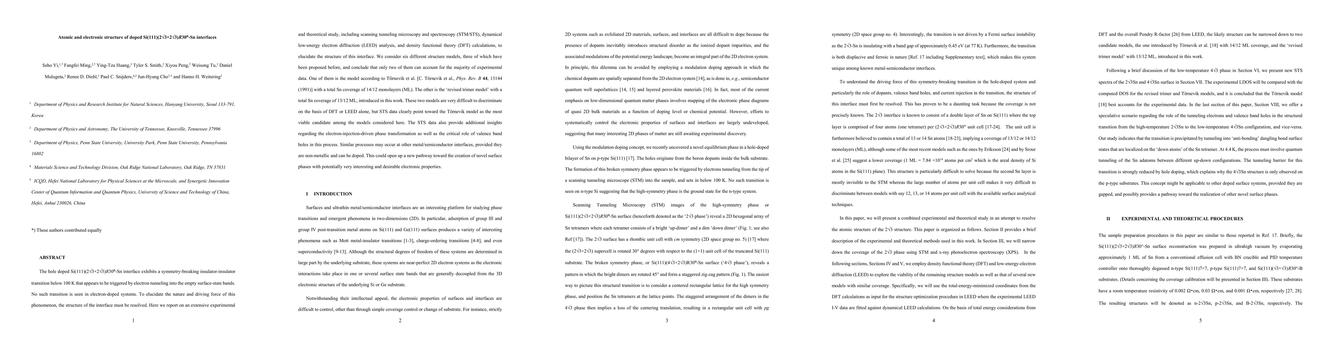 The hole doped Si(111)(2root3x2root3)R30(degrees)-Sn interface exhibits a symmetry-breaking insulator-insulator transition below 100 K that appears to be triggered by electron tunneling into the empty surface-state bands. No such transition is seen in electron-doped systems. To elucidate the nature and driving force of this phenomenon, the structure of the interface must be resolved. Here we report on an extensive experimental and theoretical study, including scanning tunneling microscopy and spectroscopy (STM/STS), dynamical low-energy electron diffraction (LEED) analysis, and density functional theory (DFT) calculations, to elucidate the structure of this interface. We consider six different structure models, three of which have been proposed before, and conclude that only two of them can account for the majority of experimental data. One of them is the model according to Tornevik et al. [C. Tornevik et al., Phys. Rev. B 44, 13144 (1991)] with a total Sn coverage of 14/12 monolayers (ML). The other is the 'revised trimer model' with a total Sn coverage of 13/12 ML, introduced in this work. These two models are very difficult to discriminate on the basis of DFT or LEED alone, but STS data clearly point toward the T\"ornevik model as the most viable candidate among the models considered here. The STS data also provide additional insights regarding the electron-injection-driven phase transformation as well as the critical role of valence band holes in this process. Similar processes may occur at other metal/semiconductor interfaces, provided they are non-metallic and can be doped. This could open up a new pathway toward the creation of novel surface phases with potentially very interesting and desirable electronic properties.