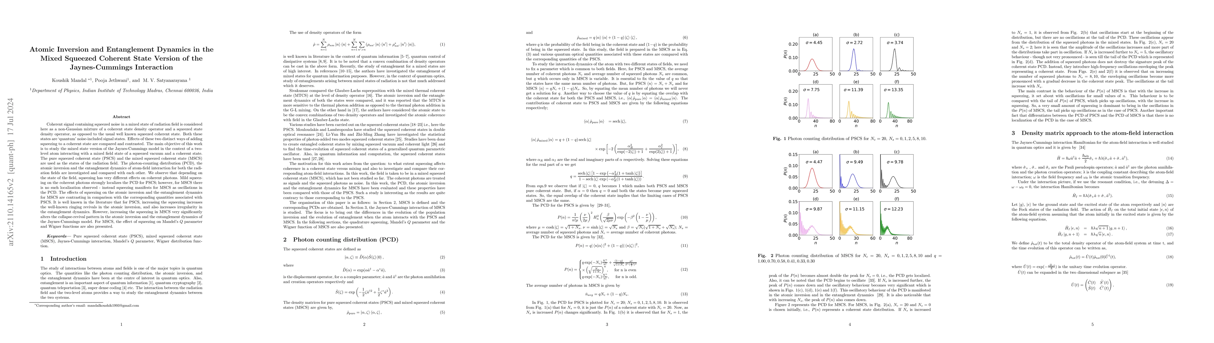 This paper investigates the dynamics of a two-level atom interacting with a mixed squeezed coherent state (MSCS) compared to a pure squeezed coherent state (PSCS). It finds that squeezing affects photon-counting distribution, atomic inversion, and entanglement dynamics differently, with MSCS showing oscillations and altered collapse-revival patterns, contrasting with PSCS's increased ringing revivals and entanglement irregularity.