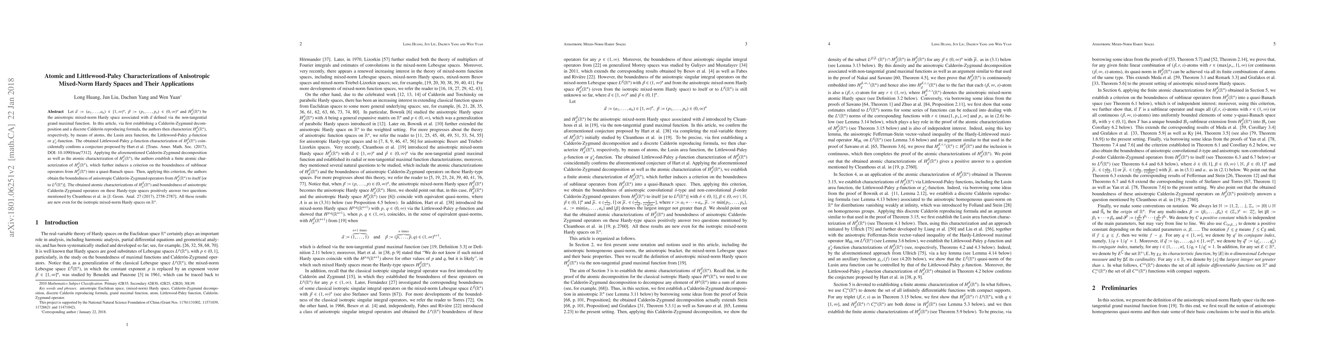 This paper characterizes anisotropic mixed-norm Hardy spaces using atomic and Littlewood-Paley approaches, confirming a conjecture and establishing boundedness criteria for anisotropic Calderón-Zygmund operators. These results answer open questions and are novel even for isotropic cases.