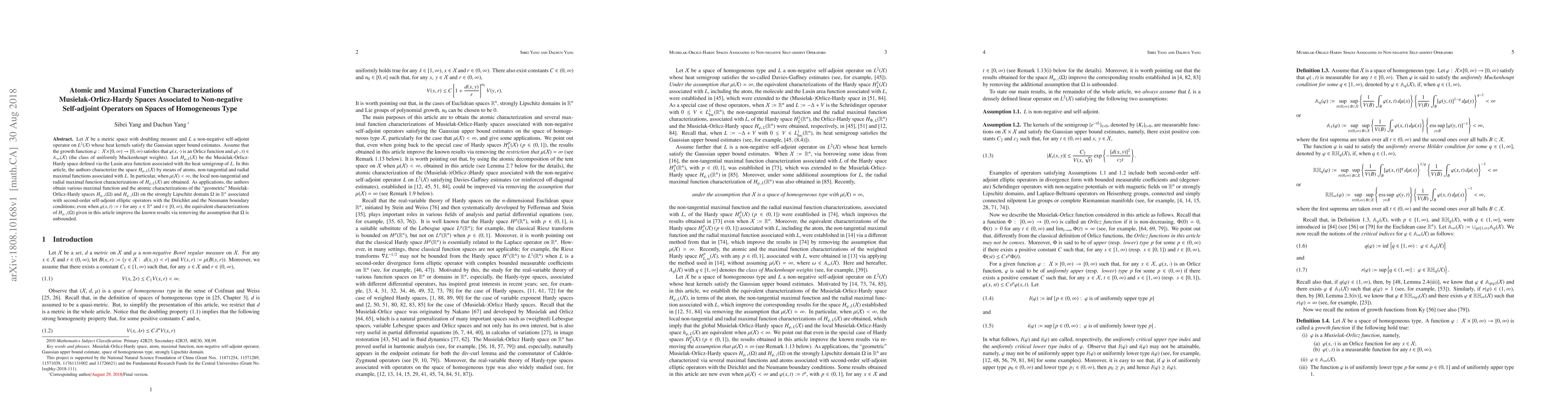 This paper characterizes Musielak-Orlicz-Hardy spaces associated with non-negative self-adjoint operators on spaces of homogeneous type using atomic and maximal function techniques. It also provides improved characterizations of "geometric" Hardy spaces on strongly Lipschitz domains without requiring the domain to be unbounded.