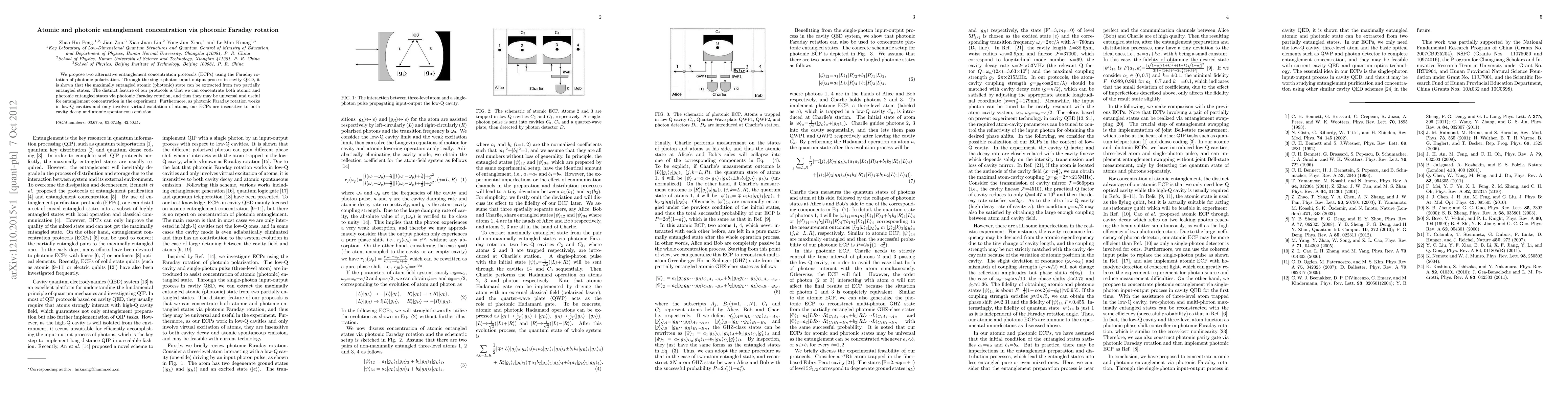 This paper proposes two novel entanglement concentration protocols utilizing photonic Faraday rotation in cavity QED to extract maximally entangled atomic or photonic states from partially entangled pairs, offering universality and robustness against experimental imperfections.