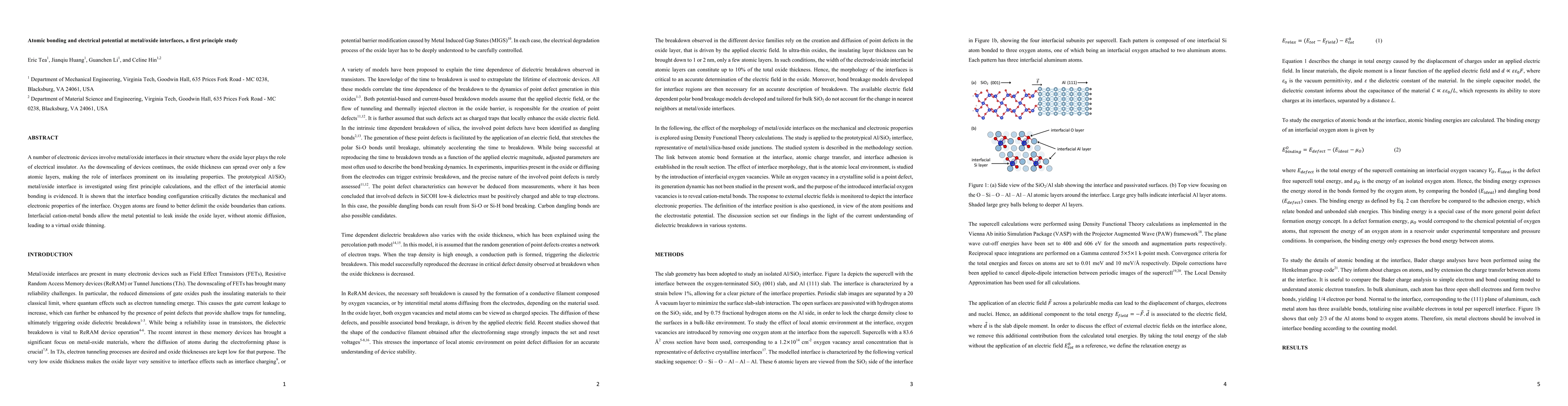 This study uses first principles calculations to investigate the Al/SiO2 metal/oxide interface, revealing that the atomic bonding configuration at the interface significantly influences both mechanical and electronic properties. The research finds that interfacial cation-metal bonds can lead to a virtual thinning of the oxide layer by allowing metal potential to penetrate without atomic diffusion.
