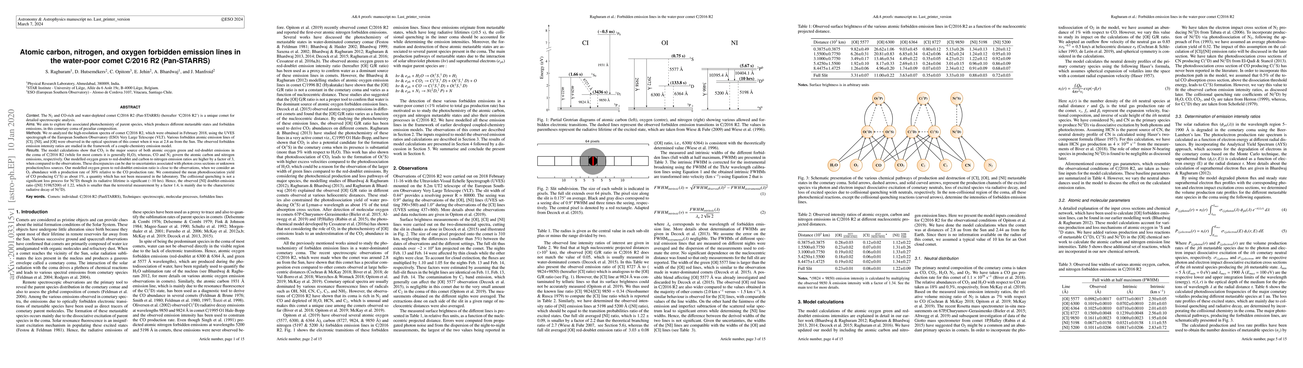 Researchers analyzed the spectra of comet C/2016 R2 to understand its photochemistry, discovering unique emission lines that differ from those in more water-rich comets.