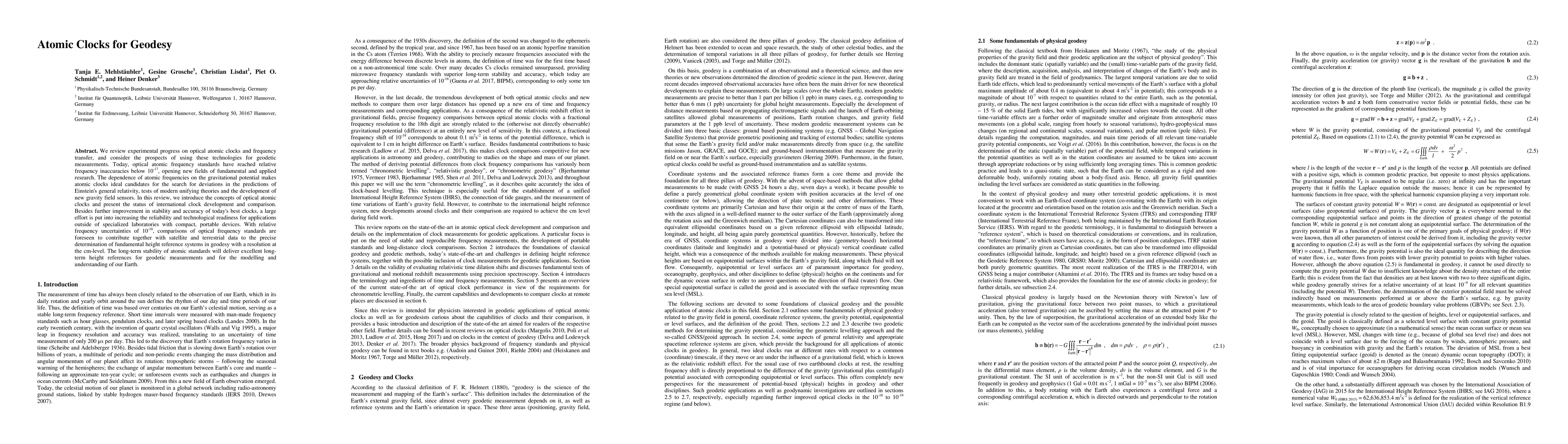 This paper reviews advancements in optical atomic clocks and their potential for geodetic measurements, highlighting their role in testing general relativity and developing new gravity sensors. It emphasizes the quest for higher stability and accuracy for practical applications, aiming for fundamental height reference systems with centimeter-level precision.