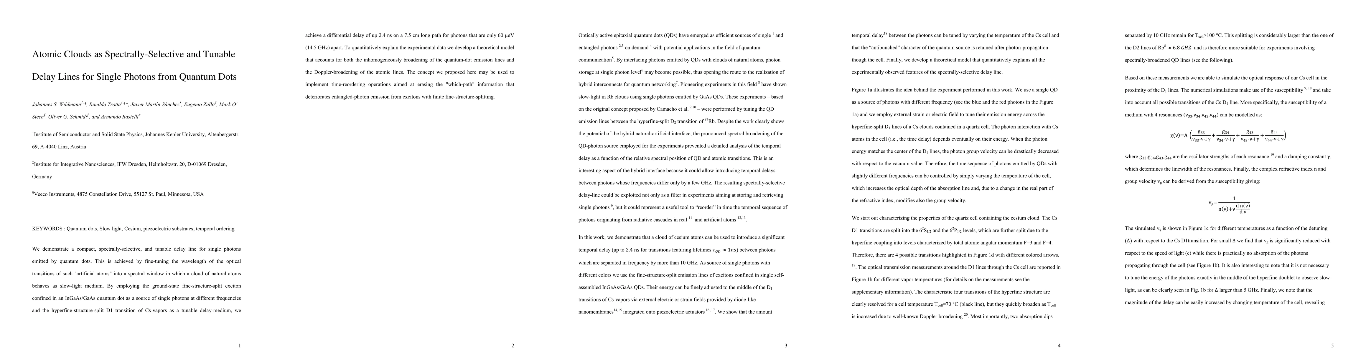 This paper presents a compact, tunable delay line for single photons from quantum dots using atomic clouds as a slow-light medium. The system achieves a differential delay of up to 2.4 ns for photons with a small spectral difference, employing a theoretical model to explain the experimental results.