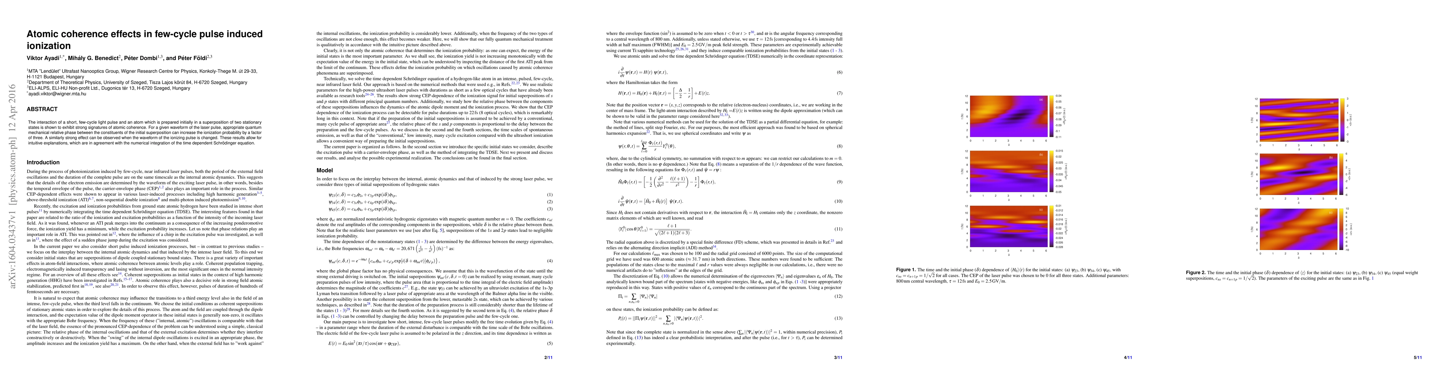 The interaction of a short, few-cycle light pulse and an atom which is prepared initially in a superposition of two stationary states is shown to exhibit strong signatures of atomic coherence. For a given waveform of the laser pulse, appropriate quantum mechanical relative phase between the constituents of the initial superposition can increase the ionization probability by a factor of three. A similarly strong effect can be observed when the waveform of the ionizing pulse is changed. These results allow for intuitive explanations, which are in agreement with the numerical integration of the time dependent Schr\"{o}dinger equation.