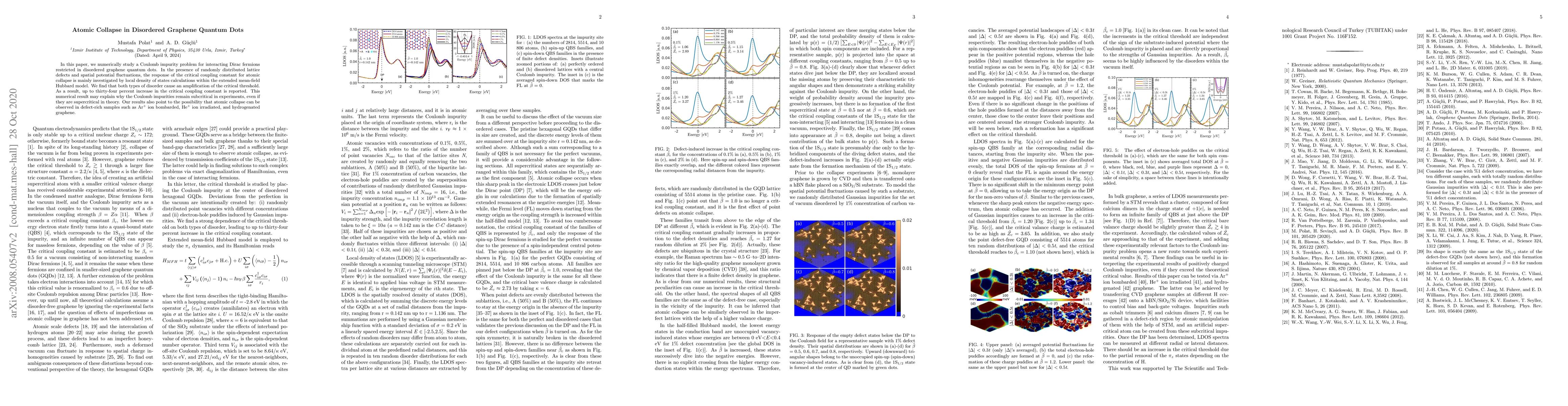 In this paper, we numerically study a Coulomb impurity problem for interacting Dirac fermions restricted in disordered graphene quantum dots. In the presence of randomly distributed lattice defects and spatial potential fluctuations, the response of the critical coupling constant for atomic collapse is mainly investigated by local density of states calculations within the extended mean-field Hubbard model. We find that both types of disorder cause an amplification of the critical threshold. As a result, up to thirty-four percent increase in the critical coupling constant is reported. This numerical result may explain why the Coulomb impurities remain subcritical in experiments, even if they are supercritical in theory. Our results also point to the possibility that atomic collapse can be observed in defect-rich samples such as Ar$^{+}$ ion bombarded, He$^{+}$ ion irradiated, and hydrogenated graphene.