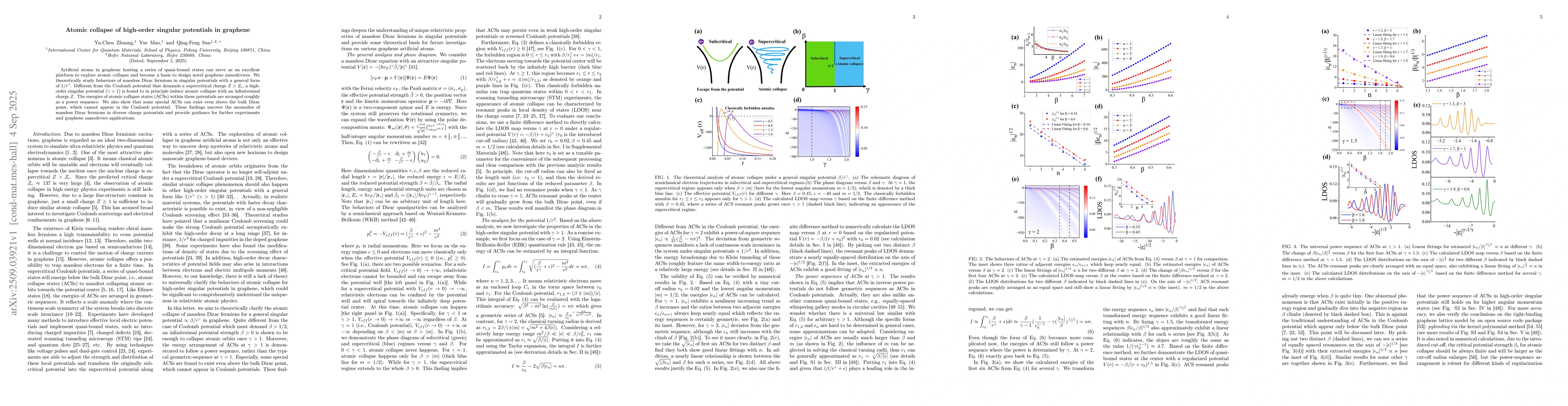 Artificial atoms in graphene hosting a series of quasi-bound states can serve as an excellent platform to explore atomic collapse and become a basis to design novel graphene nanodevices. We theoretically study behaviors of massless Dirac fermions in singular potentials with a general form of 1/r^{\gamma}. Different from the Coulomb potential that demands a supercritical charge Z > Zc, a high-order singular potential ({\gamma} > 1) is found to in principle induce atomic collapse with an infinitesimal charge Z. The energies of atomic collapse states (ACSs) within these potentials are arranged roughly as a power sequence. We also show that some special ACSs can exist even above the bulk Dirac point, which cannot appear in the Coulomb potential. These findings uncover the anomalies of massless Dirac fermions in diverse charge potentials and provide guidance for further experiments and graphene nanodevice applications.