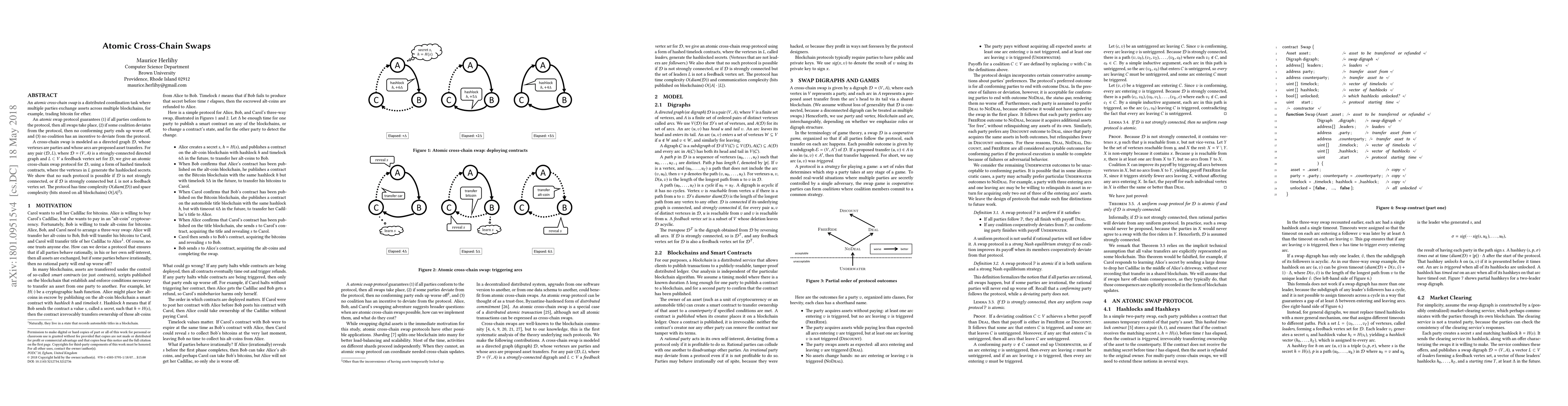 This paper proposes an atomic cross-chain swap protocol enabling secure asset exchanges between different blockchains, ensuring that all swaps complete if all parties adhere to the protocol, and no party is worse off if some deviate. The protocol leverages hashed timelock contracts and requires the directed graph representing the swap to be strongly connected.
