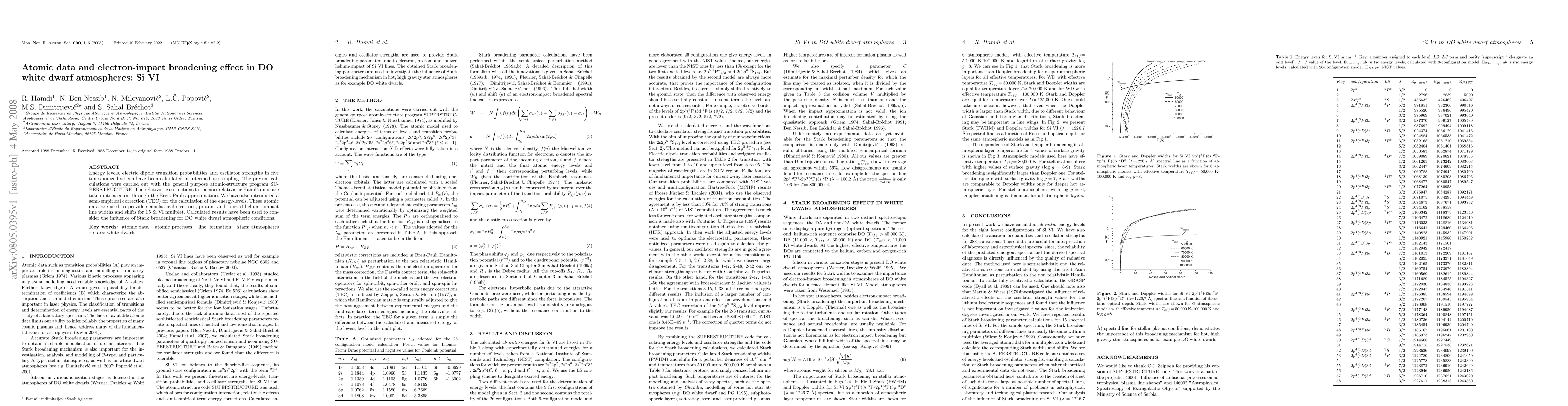 Researchers calculated atomic data for silicon in white dwarf atmospheres, including energy levels and impact line widths, to understand the effects of electron-impact broadening and Stark broadening.