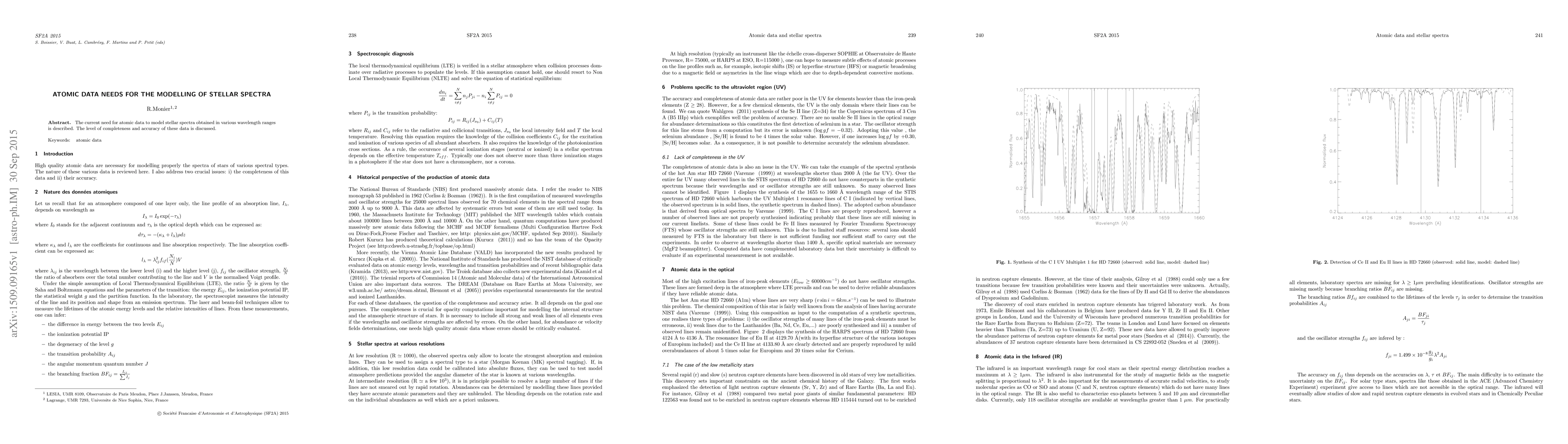 The current need for atomic data to model stellar spectra obtained in various wavelength ranges is described. The level of completeness and accuracy of these data is discussed.