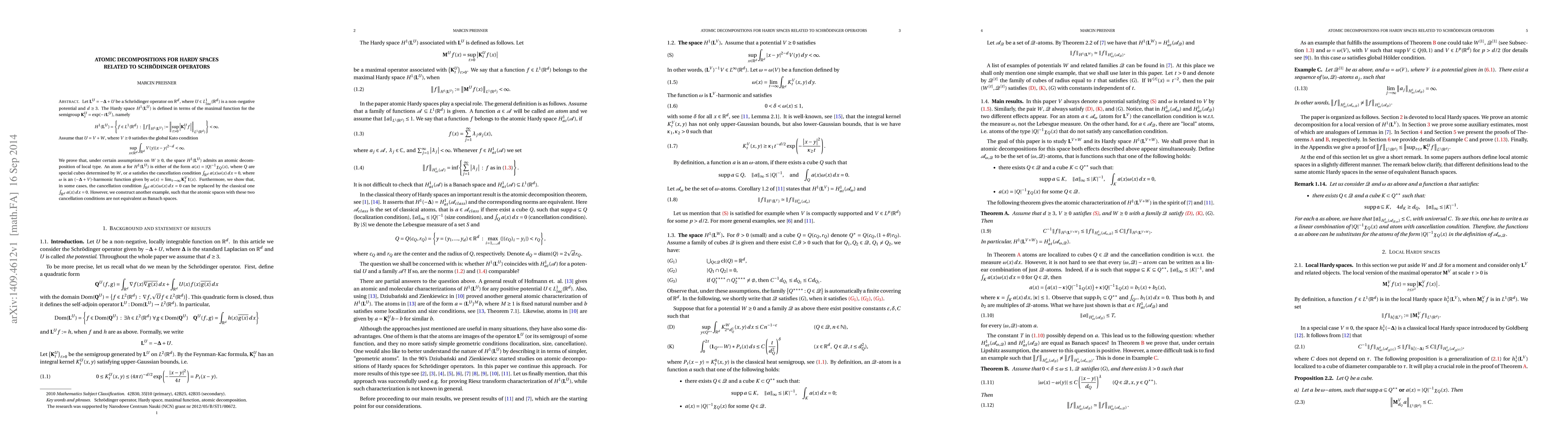 This paper investigates atomic decompositions for Hardy spaces associated with Schrödinger operators. It proves that under certain conditions on the potential, the Hardy space H^1(L_U) admits a local atomic decomposition, with atoms either defined by special cubes or satisfying a cancellation condition involving harmonic functions.
