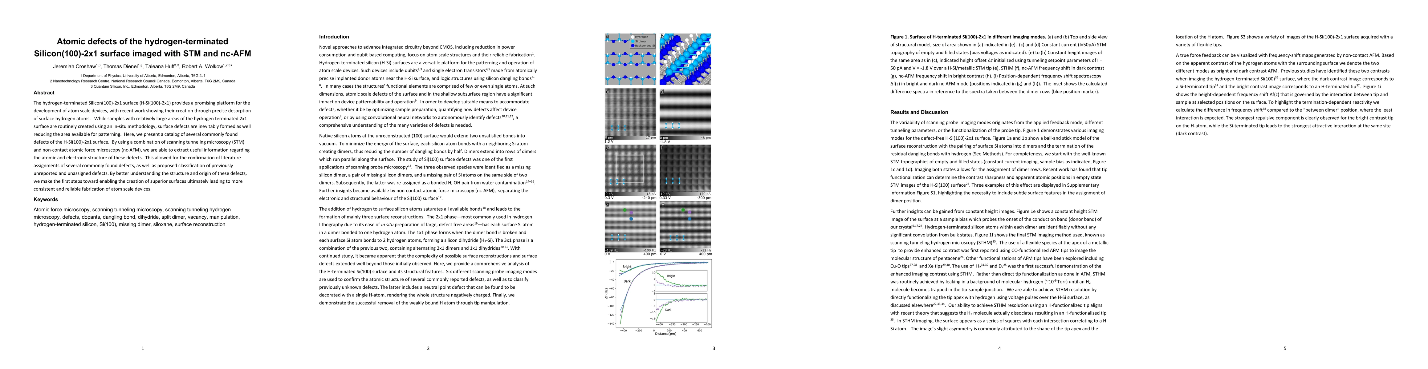 This study catalogs atomic defects on the H-Si(100)-2x1 surface using STM and nc-AFM, confirming known defects and proposing classifications for unassigned ones, aiming to improve the fabrication of atom-scale devices.