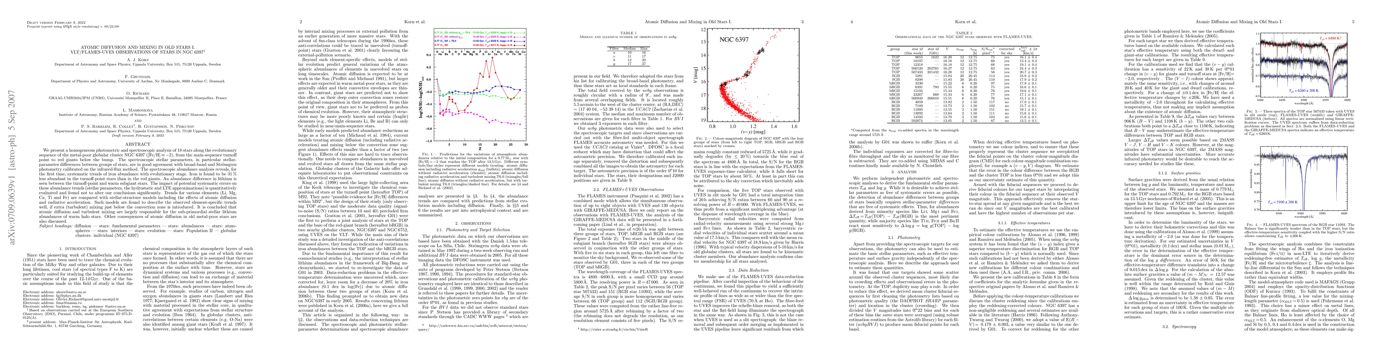We present a homogeneous photometric and spectroscopic analysis of 18 stars along the evolutionary sequence of the metal-poor globular cluster NGC 6397 ([Fe/H] = -2), from the main-sequence turnoff point to red giants below the bump. The spectroscopic stellar parameters, in particular stellar-parameter differences between groups of stars, are in good agreement with broad-band and Stroemgren photometry calibrated on the infrared-flux method. The spectroscopic abundance analysis reveals, for the first time, systematic trends of iron abundance with evolutionary stage. Iron is found to be 31% less abundant in the turnoff-point stars than in the red giants. An abundance difference in lithium is seen between the turnoff-point and warm subgiant stars. The impact of potential systematic errors on these abundance trends (stellar parameters, the hydrostatic and LTE approximations) is quantitatively evaluated and found not to alter our conclusions significantly. Trends for various elements (Li, Mg, Ca, Ti and Fe) are compared with stellar-structure models including the effects of atomic diffusion and radiative acceleration. Such models are found to describe the observed element-specific trends well, if extra (turbulent) mixing just below the convection zone is introduced. It is concluded that atomic diffusion and turbulent mixing are largely responsible for the sub-primordial stellar lithium abundances of warm halo stars. Other consequences of atomic diffusion in old metal-poor stars are also discussed.