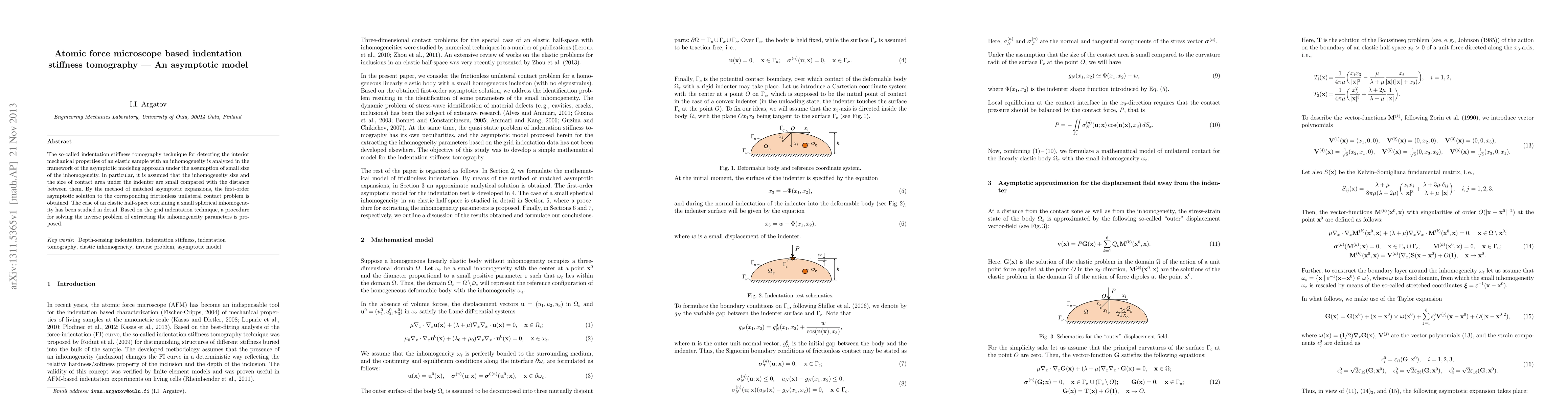 Researchers developed an asymptotic model to analyze atomic force microscope based indentation stiffness tomography for detecting internal mechanical properties of elastic samples with inhomogeneities, providing a method to extract inhomogeneity parameters.