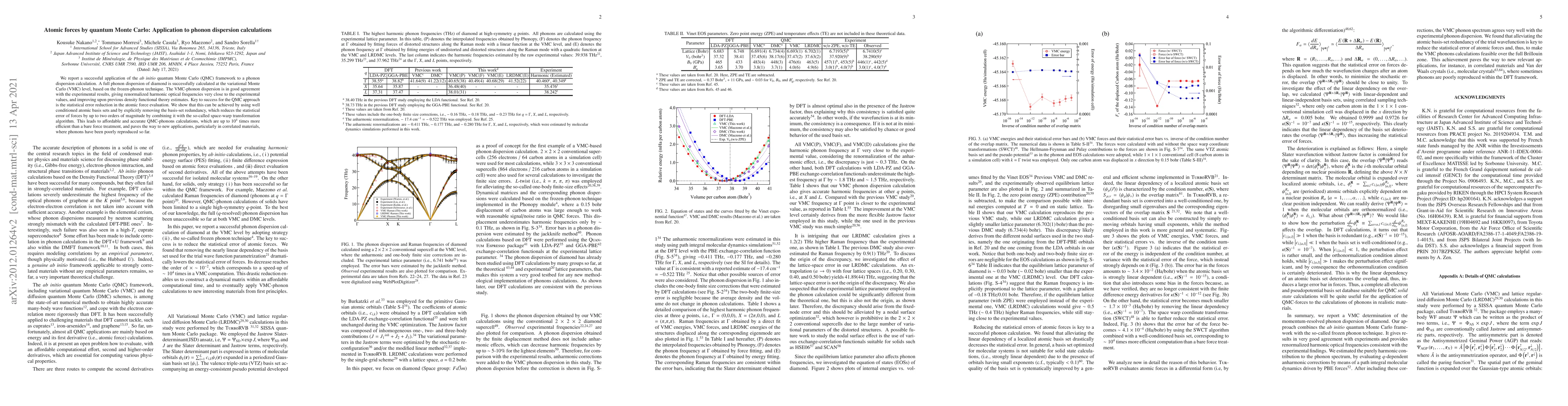 This paper presents the first successful application of quantum Monte Carlo (QMC) to phonon dispersion calculations, achieving accurate results for diamond's phonon dispersion that closely match experimental data. The method significantly improves upon density functional theory, thanks to a reduction in statistical error in atomic force evaluation using well-conditioned basis sets.