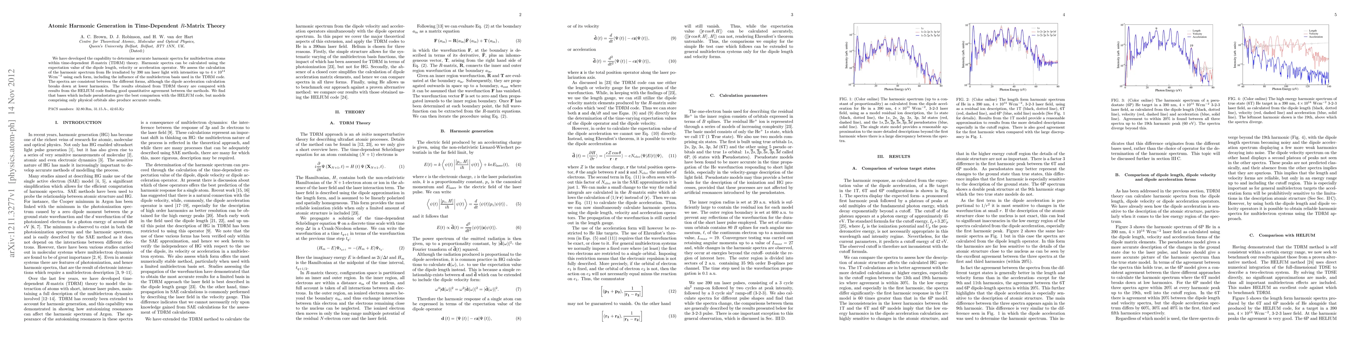 This paper develops a method within time-dependent R-matrix theory to calculate accurate harmonic spectra for multielectron atoms, demonstrating its application to helium under 390 nm laser irradiation. The results show good quantitative agreement with another code, with pseudostate bases providing the best match.