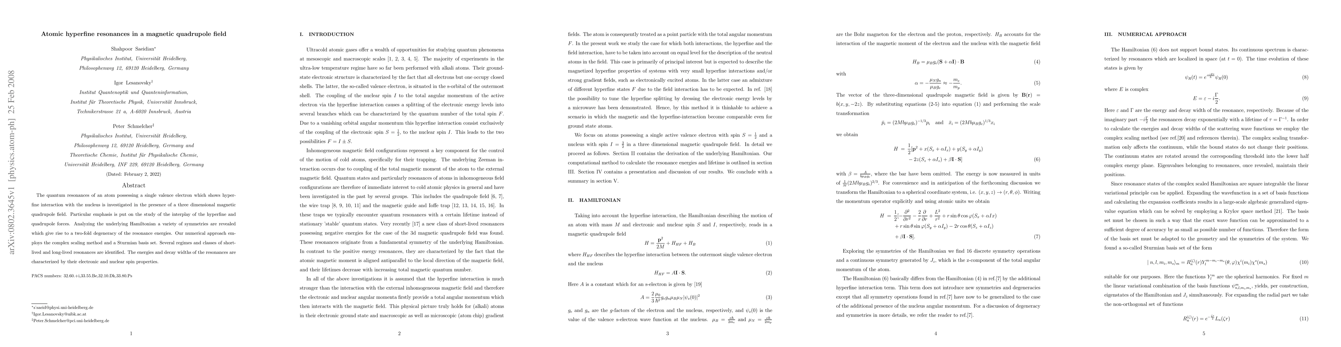 Researchers investigate atomic hyperfine resonances in a magnetic quadrupole field, revealing a two-fold degeneracy of resonance energies due to interplay between hyperfine and quadrupole forces.