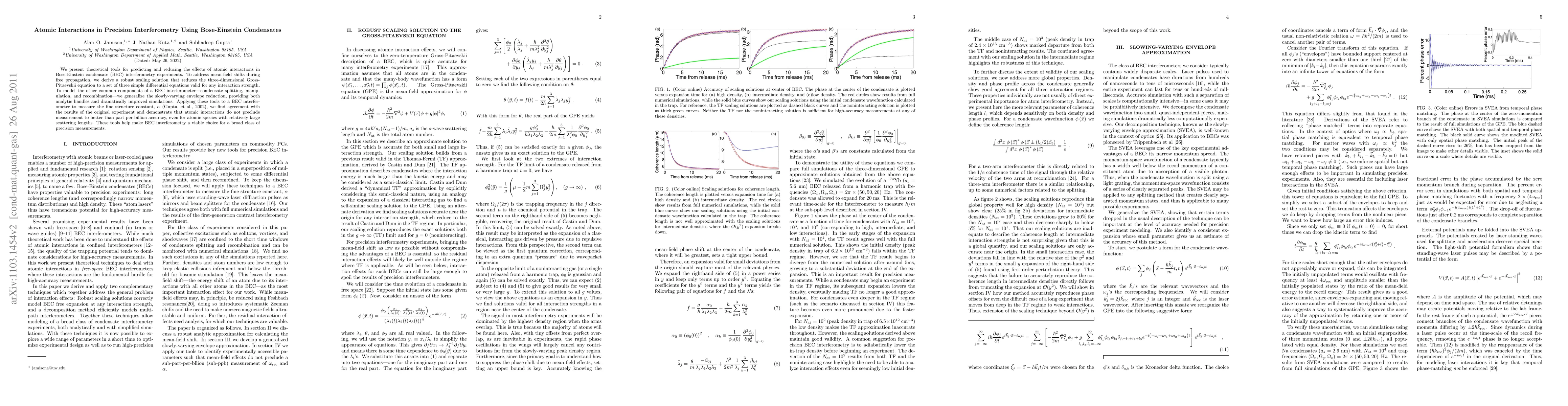 This paper develops theoretical methods to predict and mitigate atomic interactions in Bose-Einstein condensate interferometry, enabling high-precision measurements like the fine structure constant, with accuracy better than part-per-billion, despite large scattering lengths. The methods simplify complex equations and improve simulation accuracy.
