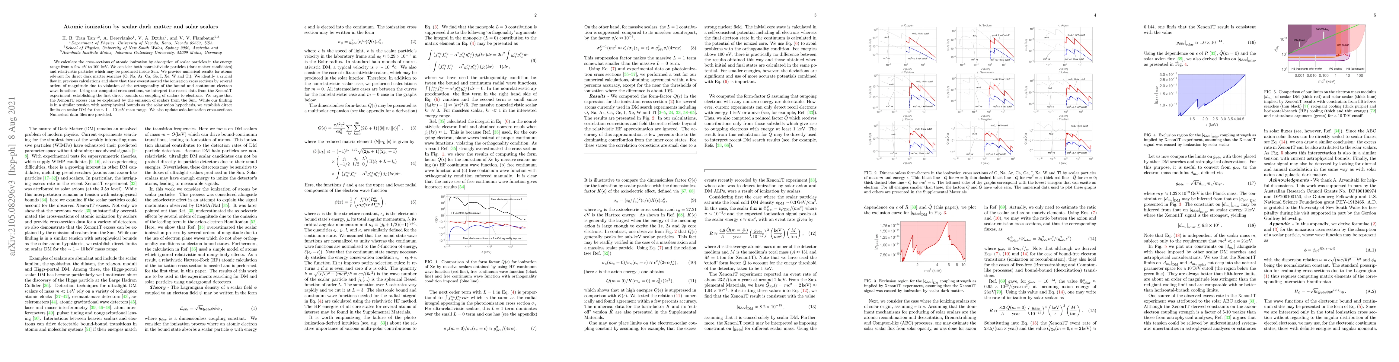 This paper calculates atomic ionization cross-sections for scalar particles in the energy range from a few eV to 100 keV, correcting previous overestimates due to wave function orthogonality violations. The findings provide new direct bounds on scalar dark matter and suggest the Xenon1T excess could be explained by solar scalar emission.