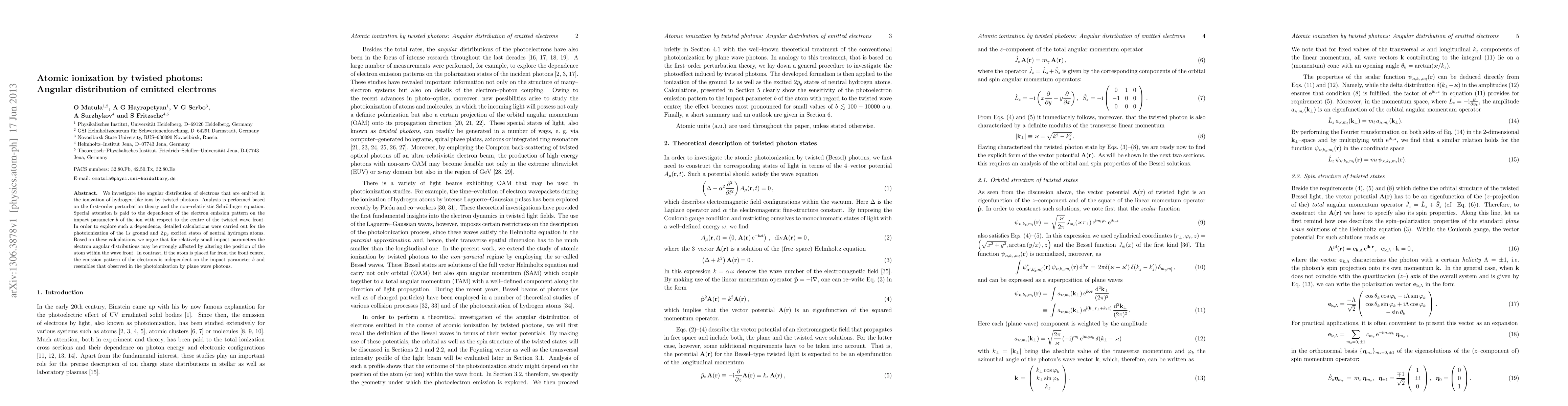 This paper examines the angular distribution of electrons emitted during the ionization of hydrogen-like ions by twisted photons, revealing that the electron emission pattern is significantly influenced by the atom's position relative to the twisted wave front's center, especially for small impact parameters. For larger distances, the pattern becomes independent of the impact parameter and similar to that from plane wave photons.