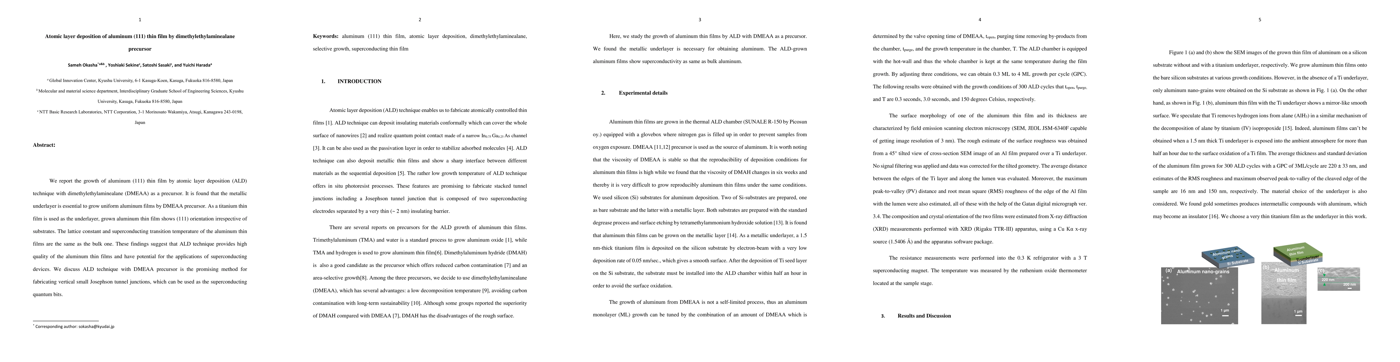 Researchers successfully grew high-quality aluminum thin films using atomic layer deposition with a dimethylethylaminealane precursor, showing promise for superconducting devices and Josephson tunnel junctions.