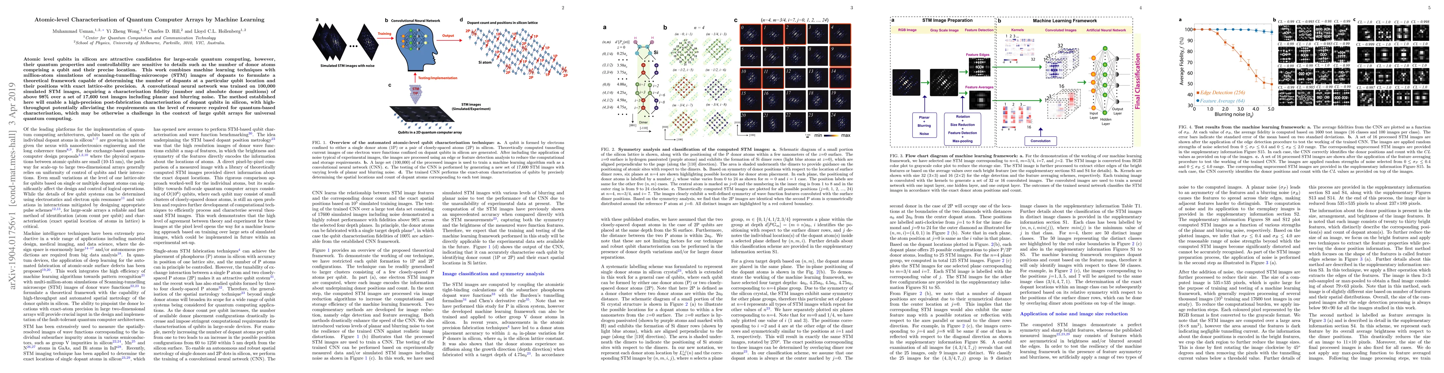 Atomic level qubits in silicon are attractive candidates for large-scale quantum computing, however, their quantum properties and controllability are sensitive to details such as the number of donor atoms comprising a qubit and their precise location. This work combines machine learning techniques with million-atom simulations of scanning-tunnelling-microscope (STM) images of dopants to formulate a theoretical framework capable of determining the number of dopants at a particular qubit location and their positions with exact lattice-site precision. A convolutional neural network was trained on 100,000 simulated STM images, acquiring a characterisation fidelity (number and absolute donor positions) of above 98\% over a set of 17,600 test images including planar and blurring noise. The method established here will enable a high-precision post-fabrication characterisation of dopant qubits in silicon, with high-throughput potentially alleviating the requirements on the level of resource required for quantum-based characterisation, which may be otherwise a challenge in the context of large qubit arrays for universal quantum computing.