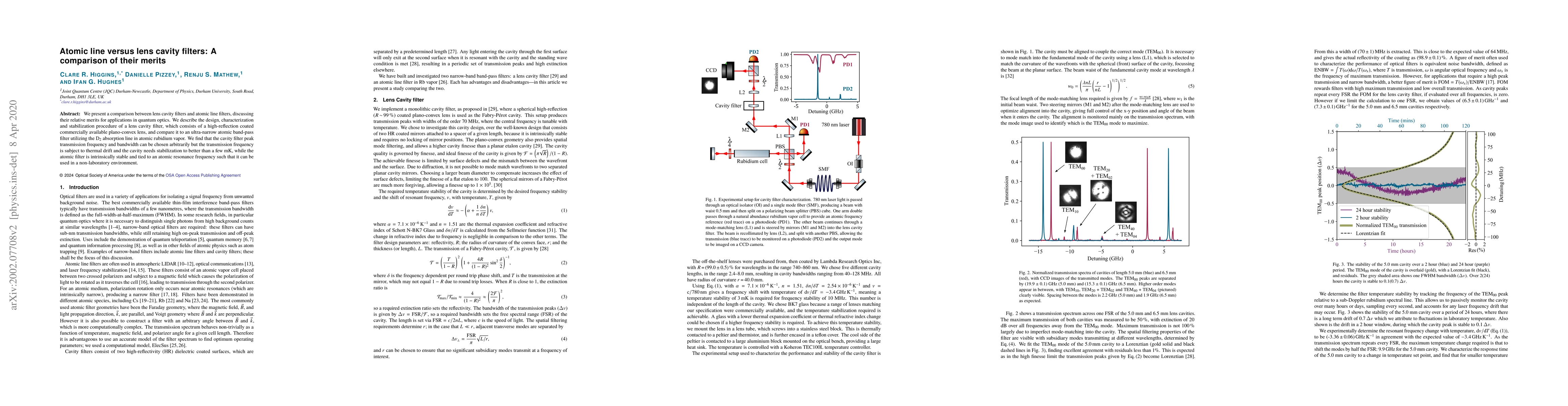 A comparison between lens cavity filters and atomic line filters reveals that atomic filters offer intrinsic stability while cavity filters can be tuned but require stabilization to function accurately.