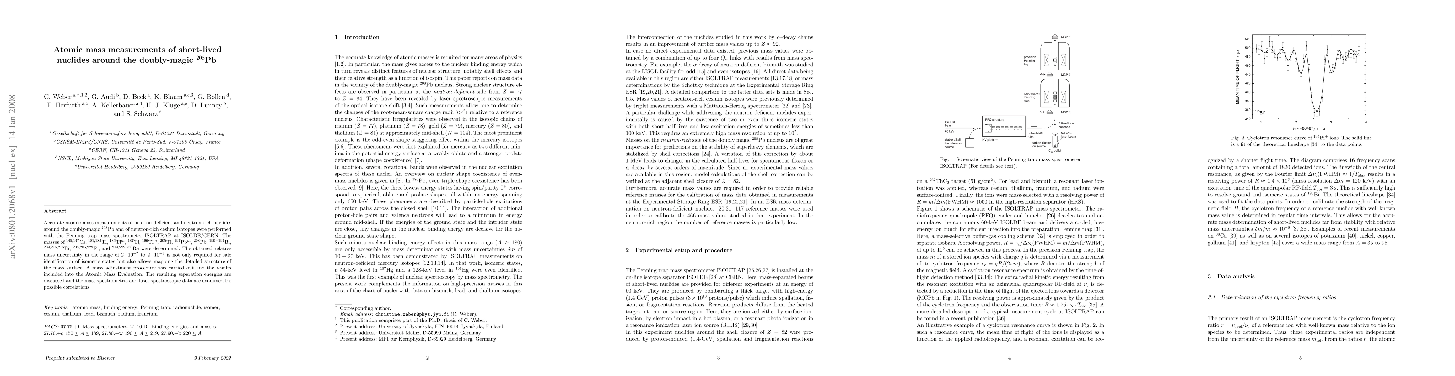 The development and application of the Penning trap mass spectrometer ISOLTRAP for high-precision atomic mass measurements of short-lived nuclides around the doubly-magic 208Pb.