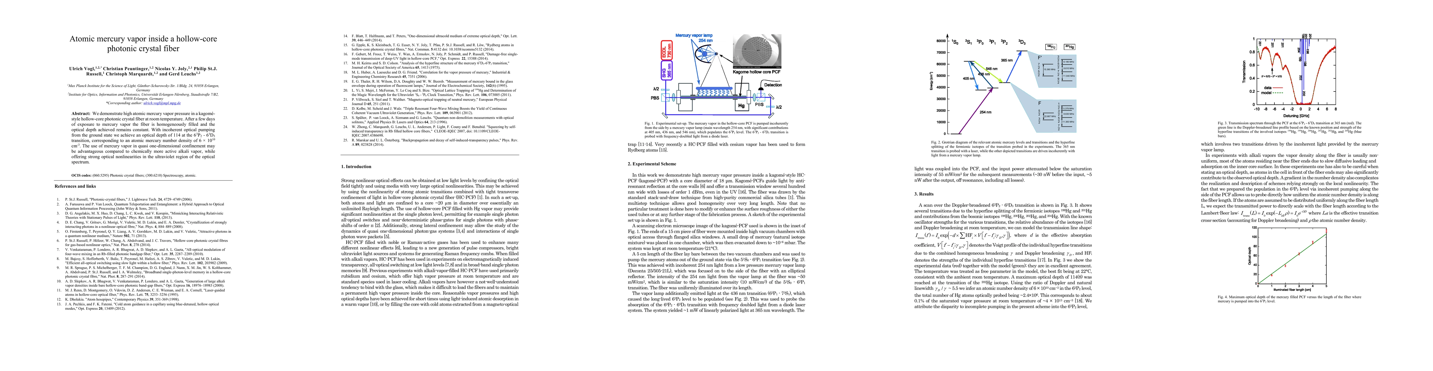 The research demonstrates high atomic mercury vapor pressure in a kagomé-style hollow-core photonic crystal fiber (HC-PCF) at room temperature using incoherent optical pumping from the ground state.