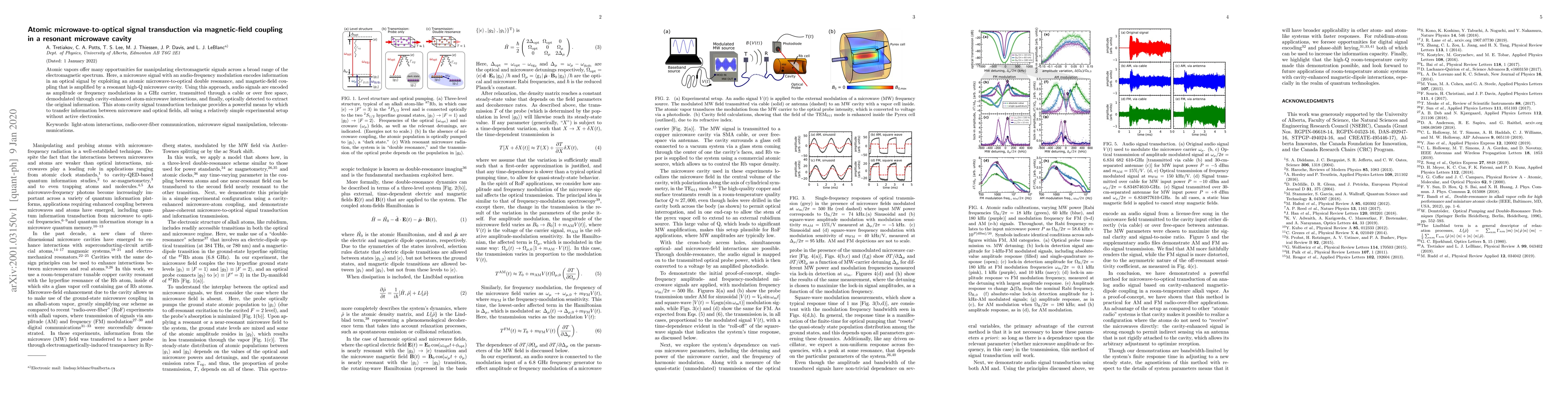This paper presents a method for converting microwave signals to optical signals using atomic vapors and magnetic-field coupling within a resonant microwave cavity, enabling the transmission and detection of audio information without active electronics. The technique leverages double resonance and cavity-enhanced atom-microwave interactions to achieve efficient signal transduction.