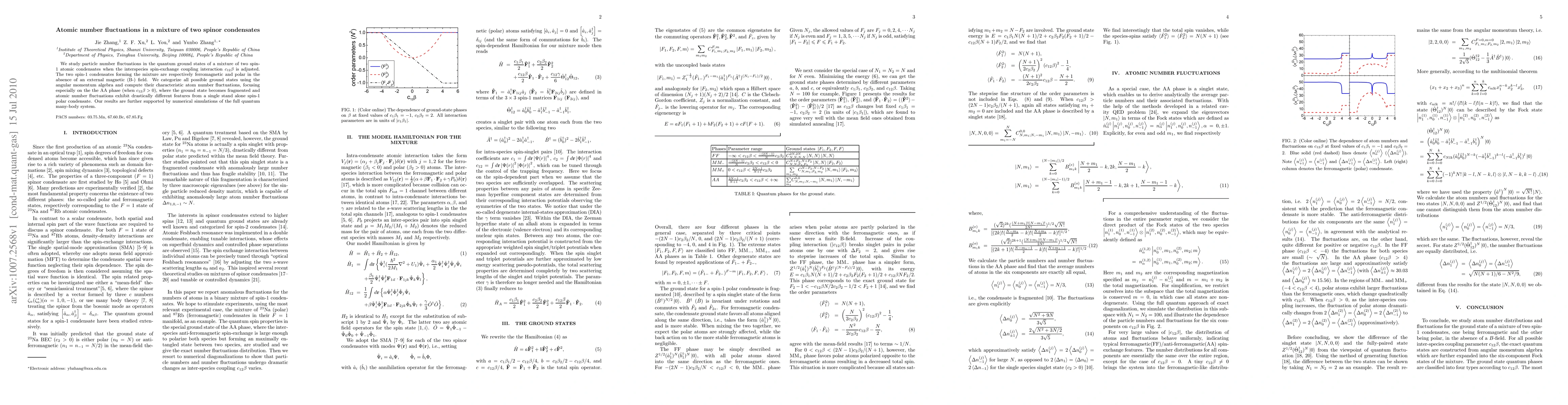 This paper investigates quantum ground states of a mixture of two spin-1 atomic condensates, analyzing fluctuations in atomic number when interspecies spin-exchange coupling is varied. The study reveals distinct atomic number fluctuation characteristics in the AA phase, where the ground state fragments, contrasting with those of a single spin-1 polar condensate, supported by numerical simulations.