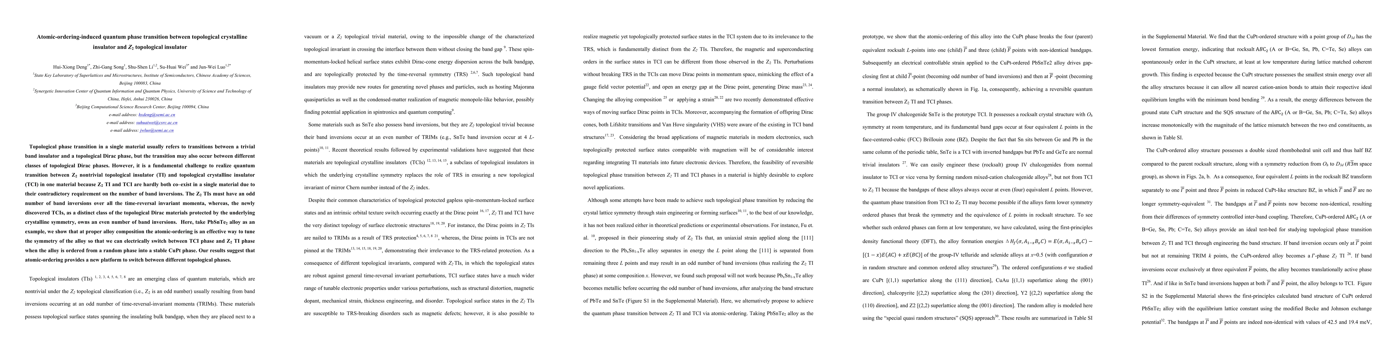 This paper demonstrates that atomic-ordering in PbSnTe2 alloys can induce a quantum phase transition between a topological crystalline insulator (TCI) and a Z2 topological insulator (TI), providing a new method to switch between these distinct topological phases by transitioning from a random to a CuPt-like ordered structure.