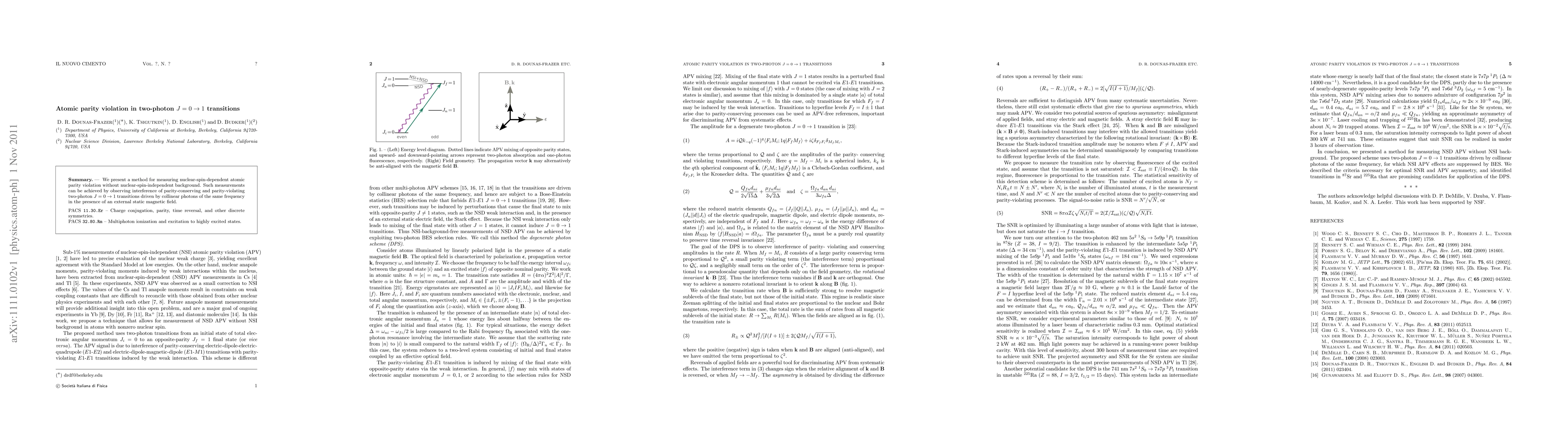 We present a method for measuring nuclear-spin-dependent atomic parity violation without nuclear-spin-independent background. Such measurements can be achieved by observing interference of parity-conserving and parity-violating two-photon J=0-to-1 transitions driven by collinear photons of the same frequency in the presence of an external static magnetic field.