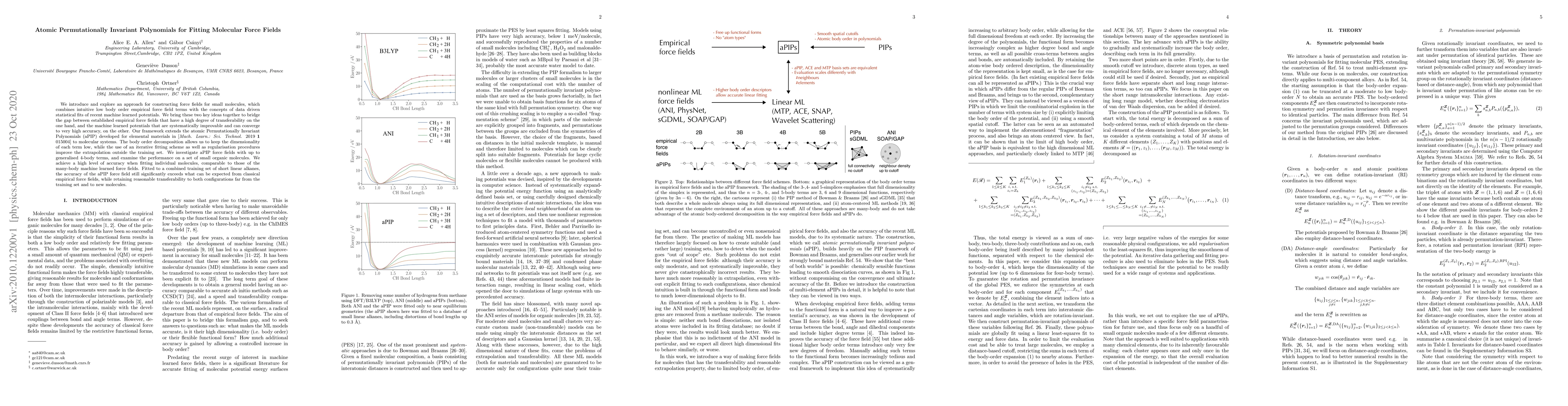 We introduce and explore an approach for constructing force fields for small molecules, which combines intuitive low body order empirical force field terms with the concepts of data driven statistical fits of recent machine learned potentials. We bring these two key ideas together to bridge the gap between established empirical force fields that have a high degree of transferability on the one hand, and the machine learned potentials that are systematically improvable and can converge to very high accuracy, on the other. Our framework extends the atomic Permutationally Invariant Polynomials (aPIP) developed for elemental materials in [Mach. Learn.: Sci. Technol. 2019 1 015004] to molecular systems. The body order decomposition allows us to keep the dimensionality of each term low, while the use of an iterative fitting scheme as well as regularisation procedures improve the extrapolation outside the training set. We investigate aPIP force fields with up to generalised 4-body terms, and examine the performance on a set of small organic molecules. We achieve a high level of accuracy when fitting individual molecules, comparable to those of the many-body machine learned force fields. Fitted to a combined training set of short linear alkanes, the accuracy of the aPIP force field still significantly exceeds what can be expected from classical empirical force fields, while retaining reasonable transferability to both configurations far from the training set and to new molecules.