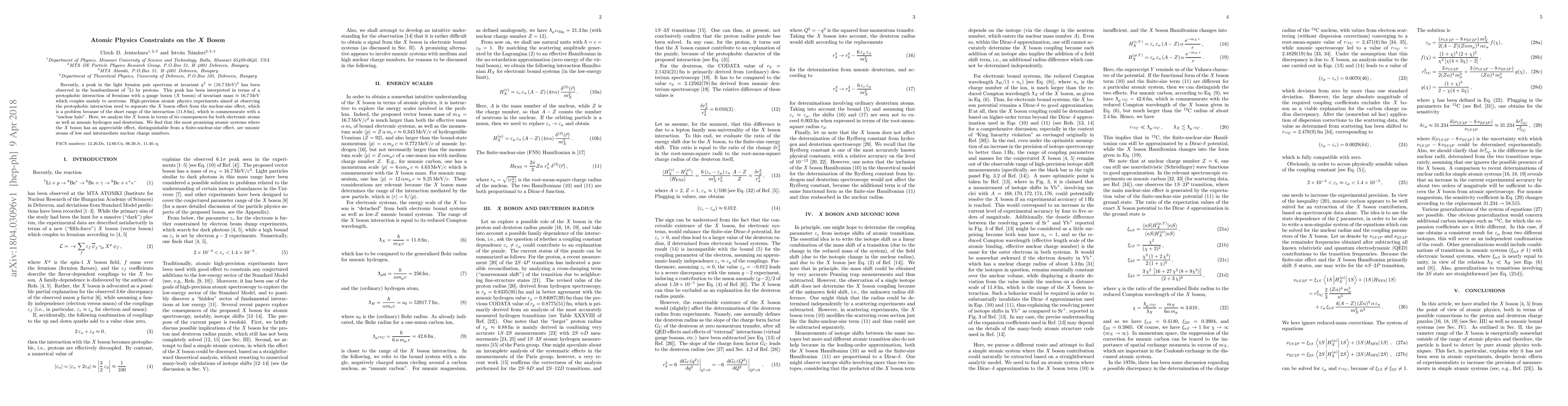 Recently, a peak in the light fermion pair spectrum at invariant q^2 approximately equal to 16.7 Me^2. has been observed in the bombardment of Li-7 by protons. This peak has been interpreted in terms of a protophobic interaction of fermions with a gauge boson (X boson) of invariant mass of approximately 16.7 MeV which couples mainly to neutrons. High-precision atomic physics experiments aimed at observing the protophobic interaction need to separate the X boson effect from the nuclear-size effect, which is a problem because of the short range of the interaction 11.8 fm, which is commensurate with a "nuclear halo". Here, we analyze the X boson in terms of its consequences for both electronic atoms as well as muonic hydrogen and deuterium. We find that the most promising atomic systems where the X boson has an appreciable effect, distinguishable from a finite-nuclear-size effect, are muonic atoms of low and intermediate nuclear charge numbers.