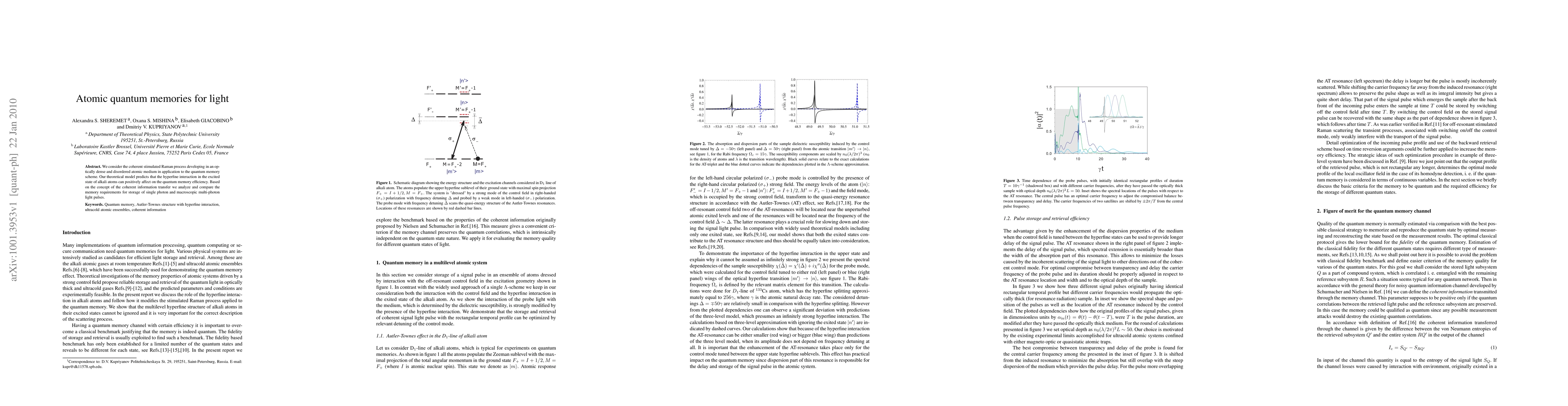 This research paper investigates the potential of atomic quantum memories for storing light pulses, with a focus on improving efficiency through hyperfine interaction in alkali atoms.