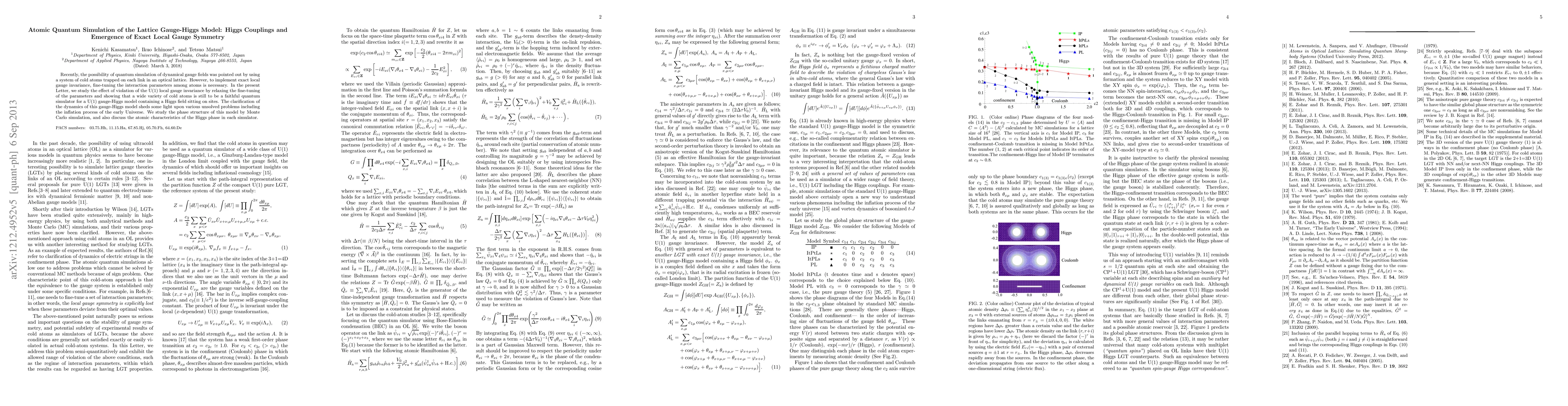 Recently, the possibility of quantum simulation of dynamical gauge fields was pointed out by using a system of cold atoms trapped on each link in an optical lattice. However, to implement exact local gauge invariance, fine-tuning the interaction parameters among atoms is necessary. In the present paper, we study the effect of violation of the U(1) local gauge invariance by relaxing the fine-tuning of the parameters and showing that a wide variety of cold atoms is still to be a faithful quantum simulator for a U(1) gauge-Higgs model containing a Higgs field sitting on sites. Clarification of the dynamics of this gauge-Higgs model sheds some lights upon various unsolved problems including the inflation process of the early universe. We study the phase structure of this model by Monte Carlo simulation, and also discuss the atomic characteristics of the Higgs phase in each simulator.