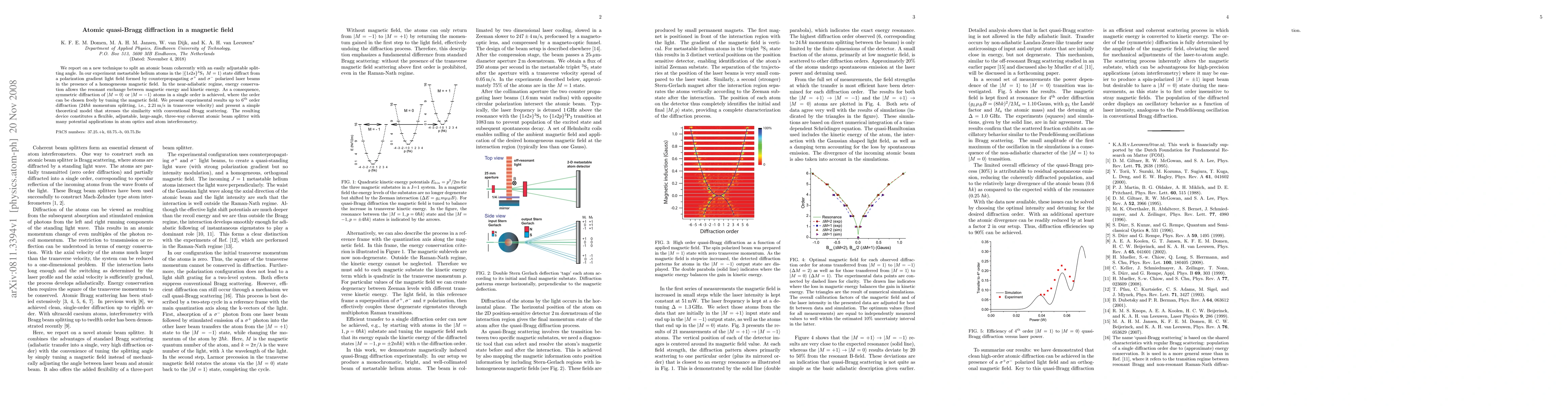This paper introduces a novel technique for coherently splitting an atomic beam using atomic quasi-Bragg diffraction in a magnetic field, achieving adjustable splitting angles and up to 6th order diffraction. The method leverages metastable helium atoms diffracting from a polarization gradient light field, allowing for versatile applications in atom optics and interferometry.