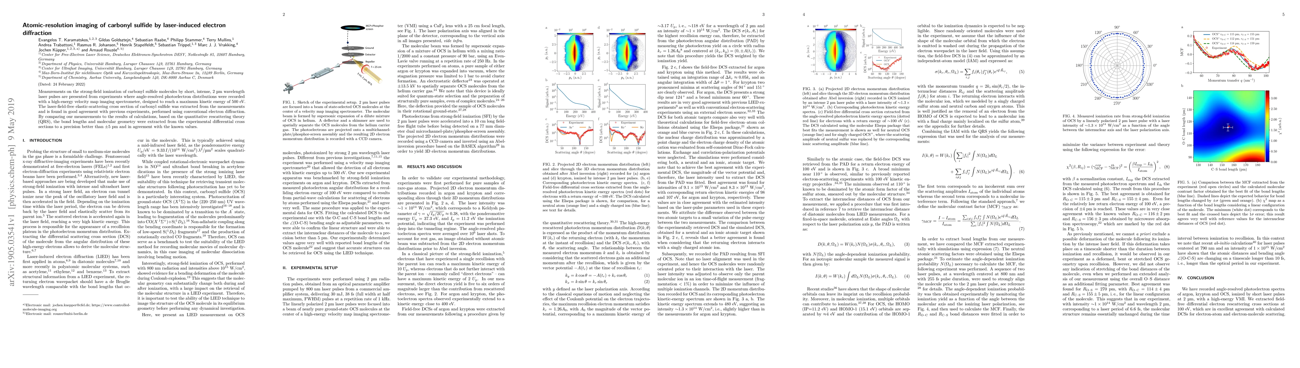 This paper reports on atomic-resolution imaging of carbonyl sulfide using laser-induced electron diffraction, revealing bond lengths and molecular geometry with precision better than ±5 pm, in agreement with known values, and validating previous electron diffraction results.
