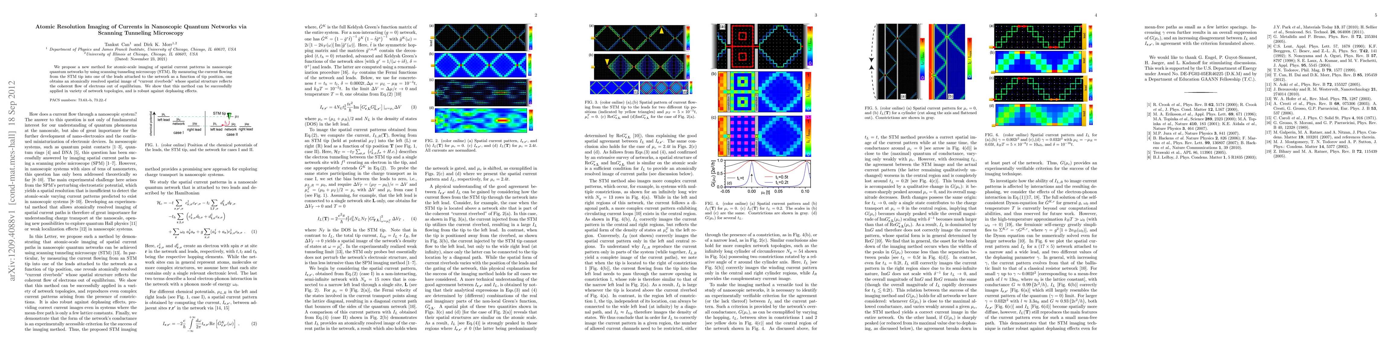 This paper introduces a novel scanning tunneling microscopy (STM) technique for atomic-resolution imaging of current patterns in nanoscopic quantum networks, revealing the coherent electron flow out of equilibrium. The method is shown to be effective across various network topologies and resilient to dephasing effects.