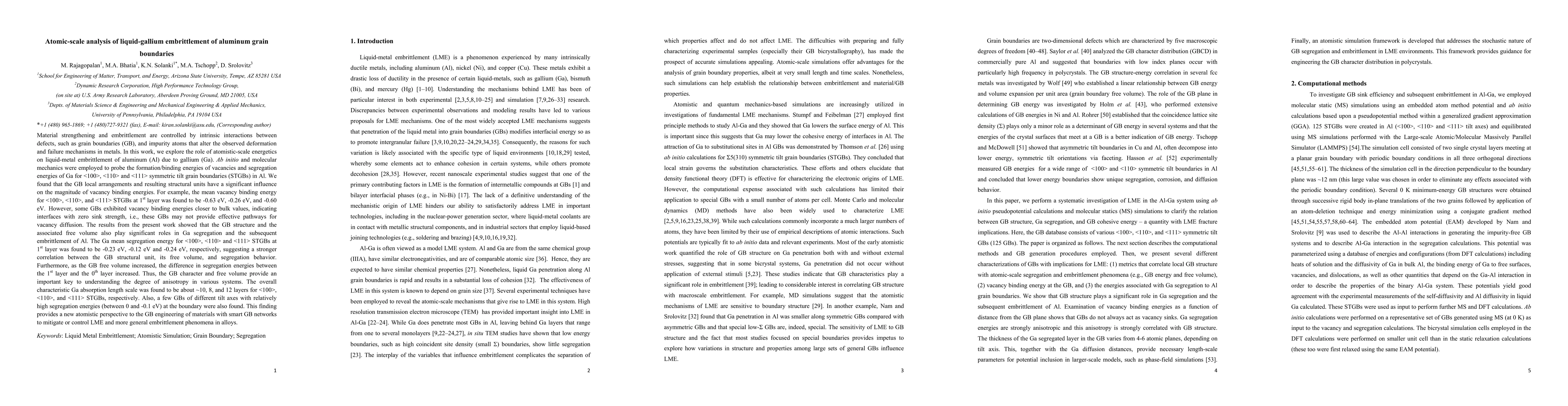 In this work, we explore the role of atomistic-scale energetics on liquid-metal embrittlement of Al due to Ga. Ab initio and molecular mechanics were employed to probe the binding energies of vacancies and segregation energies of Ga for <100>, <110> and <111> STGBs in Al. We found that the GB local arrangements and resulting structural units have a significant influence on the magnitude of vacancy binding energies. For example, the mean vacancy binding energy for <100>, <110>, and <111> STGBs at 1st layer was found to be -0.63 eV, -0.26 eV, and -0.60 eV. However, some GBs exhibited vacancy binding energies closer to bulk values, indicating interfaces with zero sink strength, i.e., these GBs may not provide effective pathways for vacancy diffusion. The results from the present work showed that the GB structure and the associated free volume also play significant roles in Ga segregation and the subsequent embrittlement of Al. The Ga mean segregation energy for <100>, <110> and <111> STGBs at 1st layer was found to be -0.23 eV, -0.12 eV and -0.24 eV, respectively, suggesting a stronger correlation between the GB structural unit, its free volume, and segregation behavior. Furthermore, as the GB free volume increased, the difference in segregation energies between the 1st layer and the 0th layer increased. Thus, the GB character and free volume provide an important key to understanding the degree of anisotropy in various systems. The overall characteristic Ga absorption length scale was found to be about ~10, 8, and 12 layers for <100>, <110>, and <111> STGBs, respectively. Also, a few GBs of different tilt axes with relatively high segregation energies (between 0 and -0.1 eV) at the boundary were also found. This finding provides a new atomistic perspective to the GB engineering of materials with smart GB networks to mitigate or control LME and more general embrittlement phenomena in alloys.