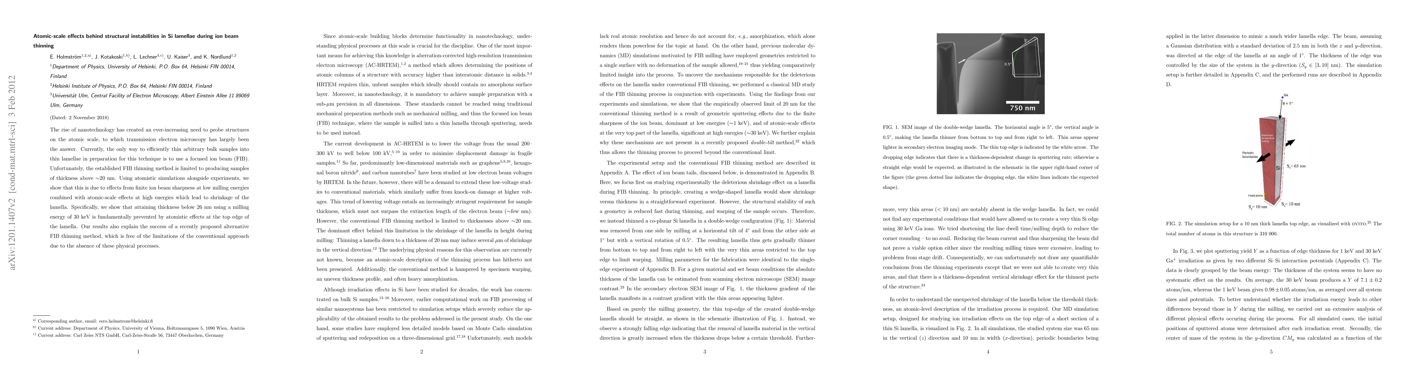 The rise of nanotechnology has created an ever-increasing need to probe structures on the atomic scale, to which transmission electron microscopy has largely been the answer. Currently, the only way to efficiently thin arbitrary bulk samples into thin lamellae in preparation for this technique is to use a focused ion beam (FIB). Unfortunately, the established FIB thinning method is limited to producing samples of thickness above ~20 nm. Using atomistic simulations alongside experiments, we show that this is due to effects from finite ion beam sharpness at low milling energies combined with atomic-scale effects at high energies which lead to shrinkage of the lamella. Specifically, we show that attaining thickness below 26 nm using a milling energy of 30 keV is fundamentally prevented by atomistic effects at the top edge of the lamella. Our results also explain the success of a recently proposed alternative FIB thinning method, which is free of the limitations of the conventional approach due to the absence of these physical processes.