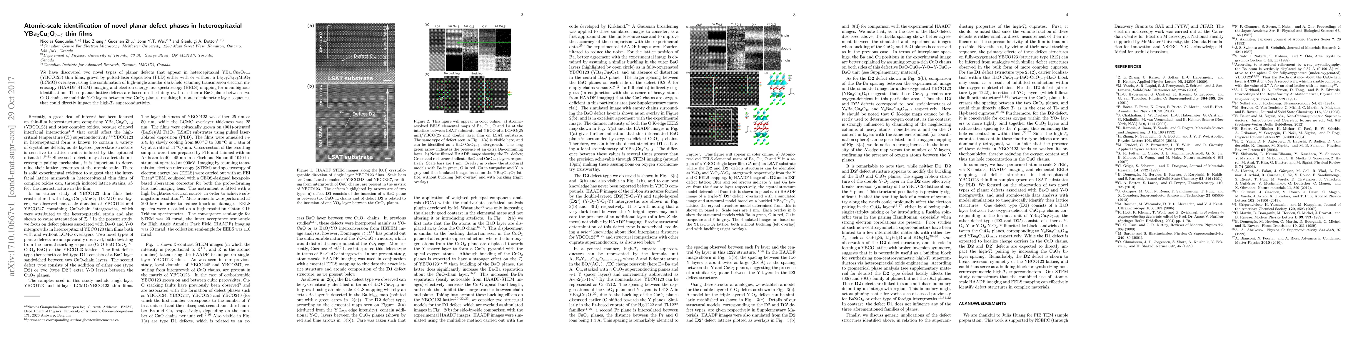 Researchers identified two new planar defect types in YBCO123 thin films using HAADF-STEM and EELS. These defects, caused by BaO/CuO or Y-O/CuO2 intergrowths, may affect high-$T_c$ superconductivity in these films.